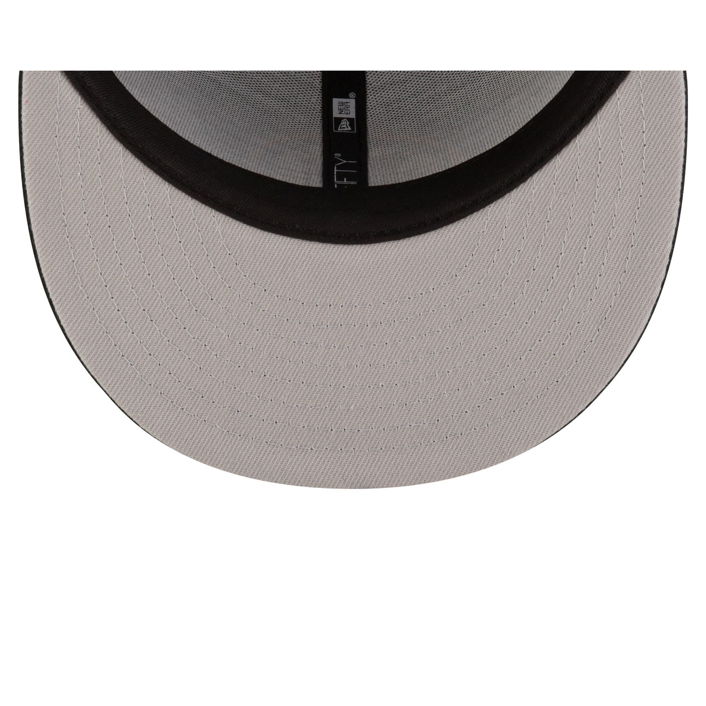 The Boston Bruins Black 9FIFTY Snapback features an embroidered Bruins logo a the front panels with a snapback closure at the rear and a gray undervisor.