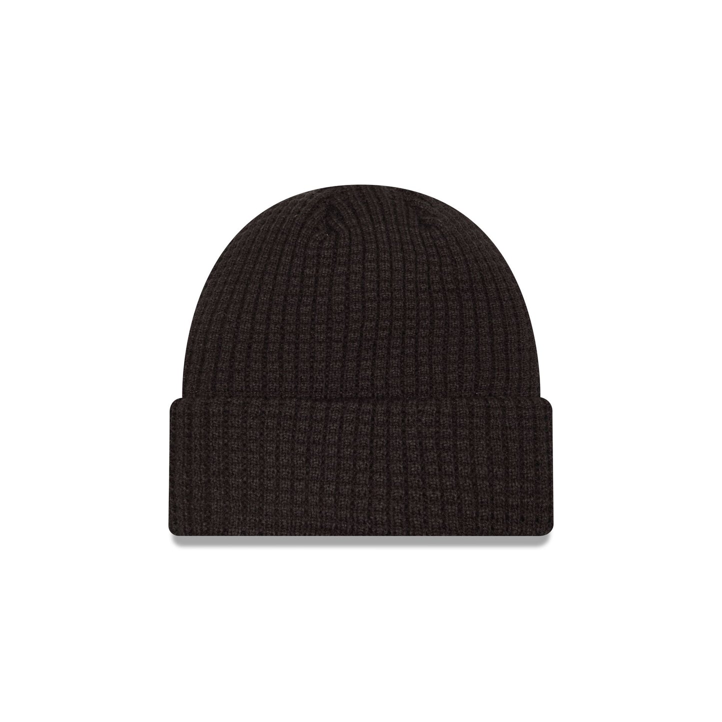 The Boston Bruins Black Waffle Knit Hat features an embroidered Bruins Historic logo at the front cuff.