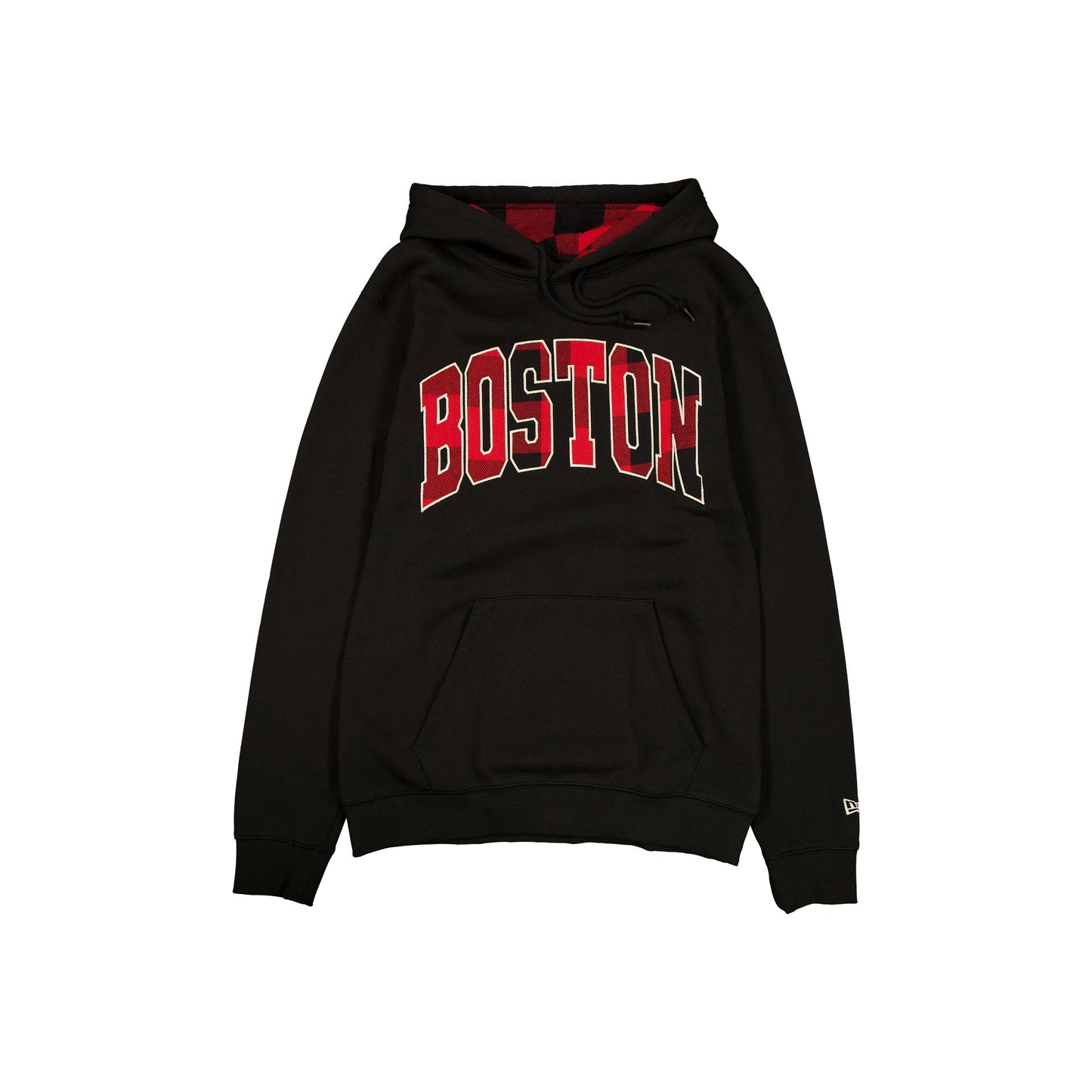 The Boston Bruins Evergreen Check Hoodie features an embroidered applique Bruins checkered wordmark at the front with a matching interior hood and logo at the rear. Additional details include kangaroo pockets and adjustable drawstrings at the hood.