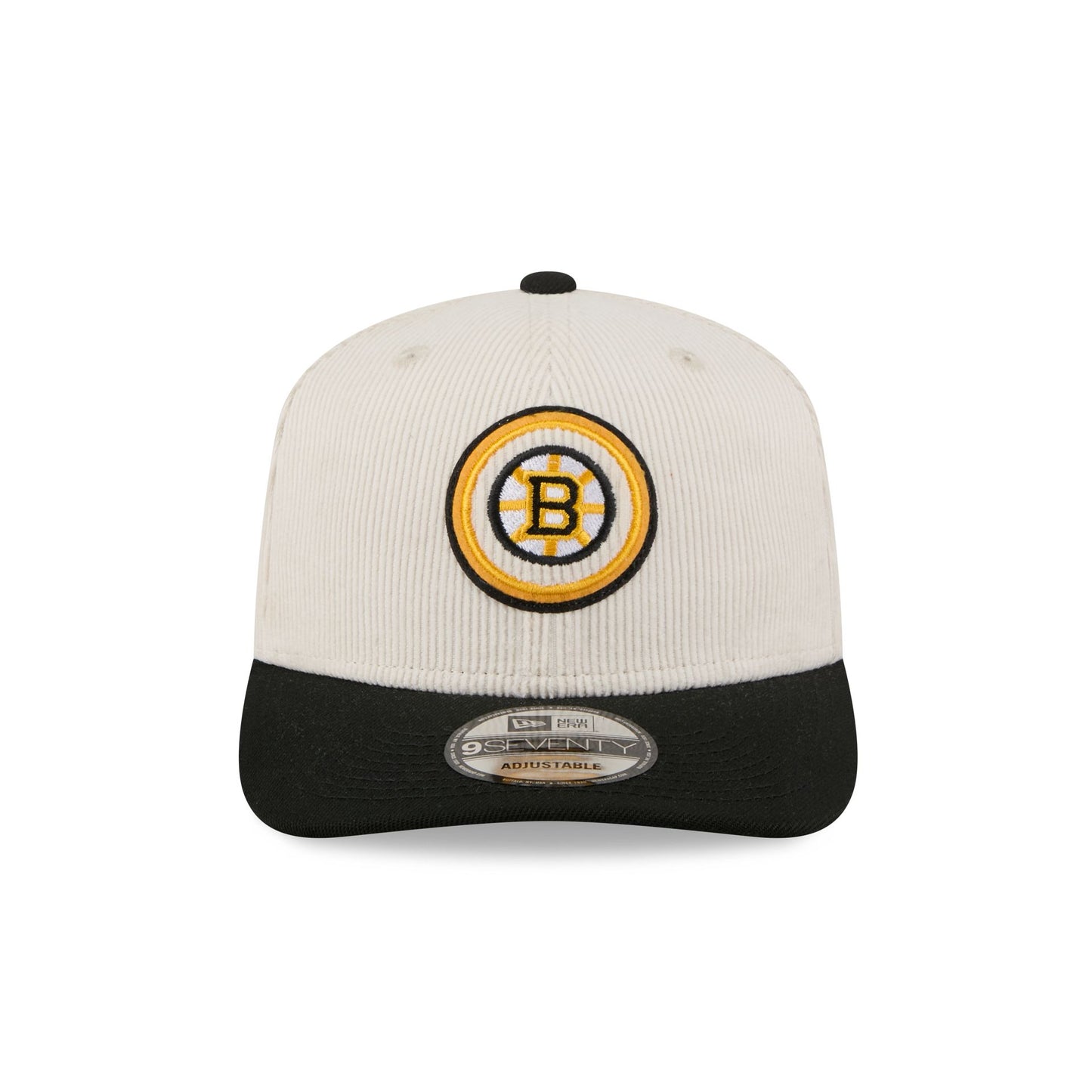 The Boston Bruins Loyal Corduroy 9SEVENTY Stretch-Snap features an embroidered Bruins logo at the front panels against a corduroy fabrication throughout the cap. Additional details include an alternate logo at the right-wear side with an adjustable stretch-snap closure at the rear.