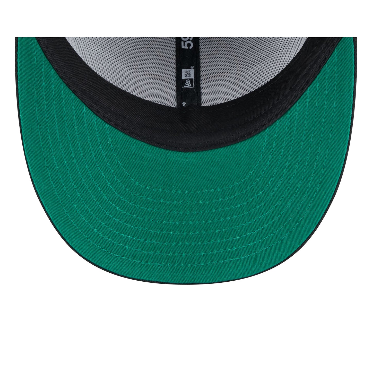The Boston Bruins NHL Pack Low Profile 59FIFTY Fitted Cap features an embroidered Bruins wordmark over a team logo at the front panels with a matching NHL Shield at the rear. Additional details include a team logo at the right-wear side with a green undervisor.