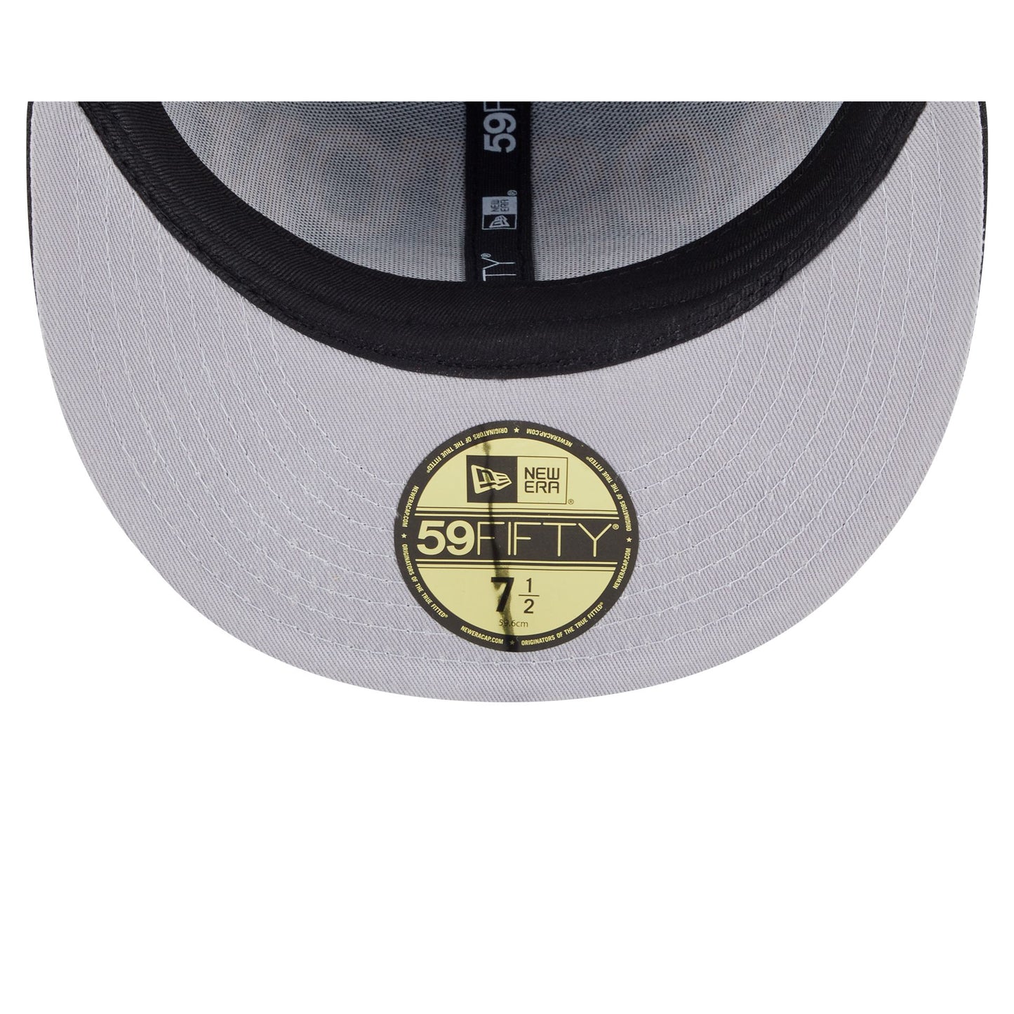 The Boston Bruins Oversized 59FIFTY Fitted Cap features an embroidered Bruins Historic oversized graphic at the front panels and visor. Additional details include an NHL Shield logo at the rear and a gray undervisor.