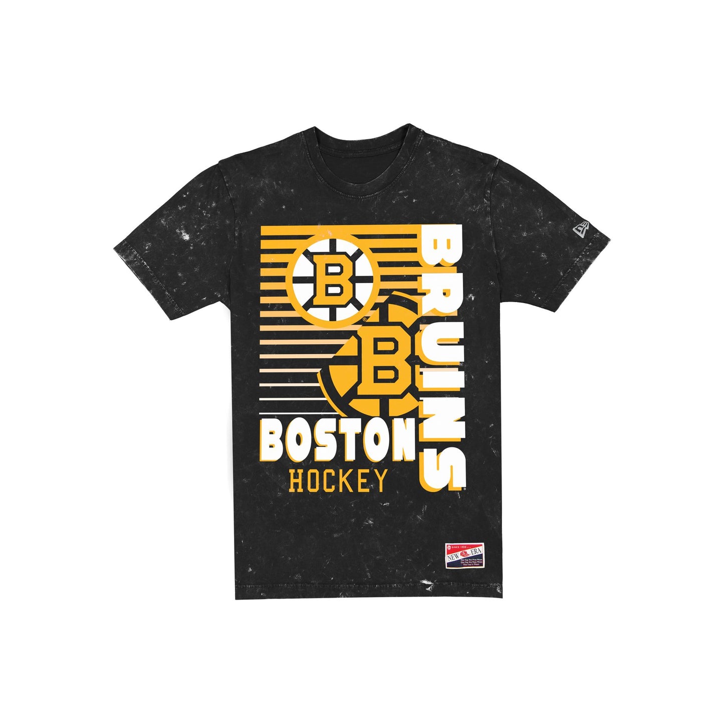 The Boston Bruins Throwback Washed Black T-Shirt features a screen-printed Bruins graphic at the front.