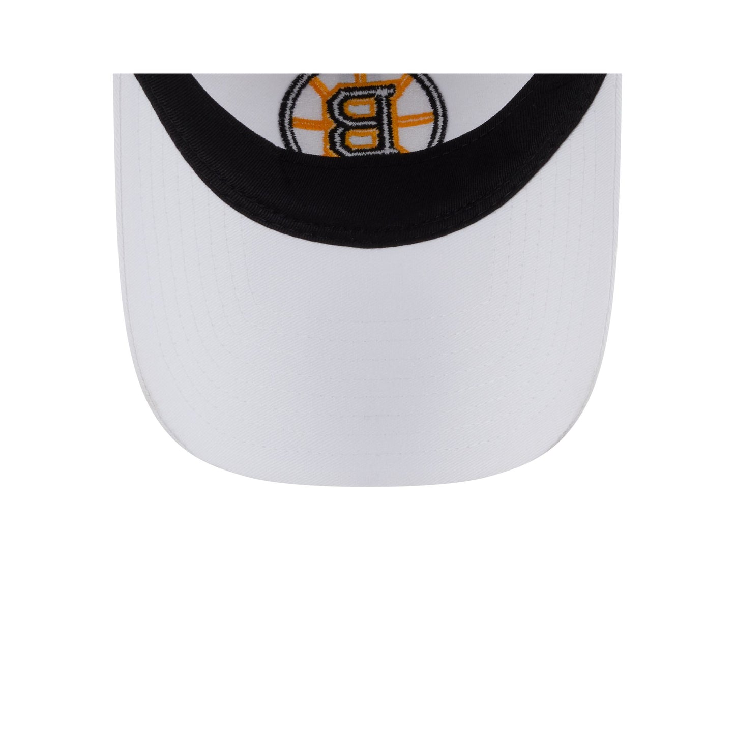The Boston Bruins White 9TWENTY Adjustable Cap features an embroidered Bruins logo at the front panel with a matching woven team logo tag at an adjustable D-Ring closure at the rear.