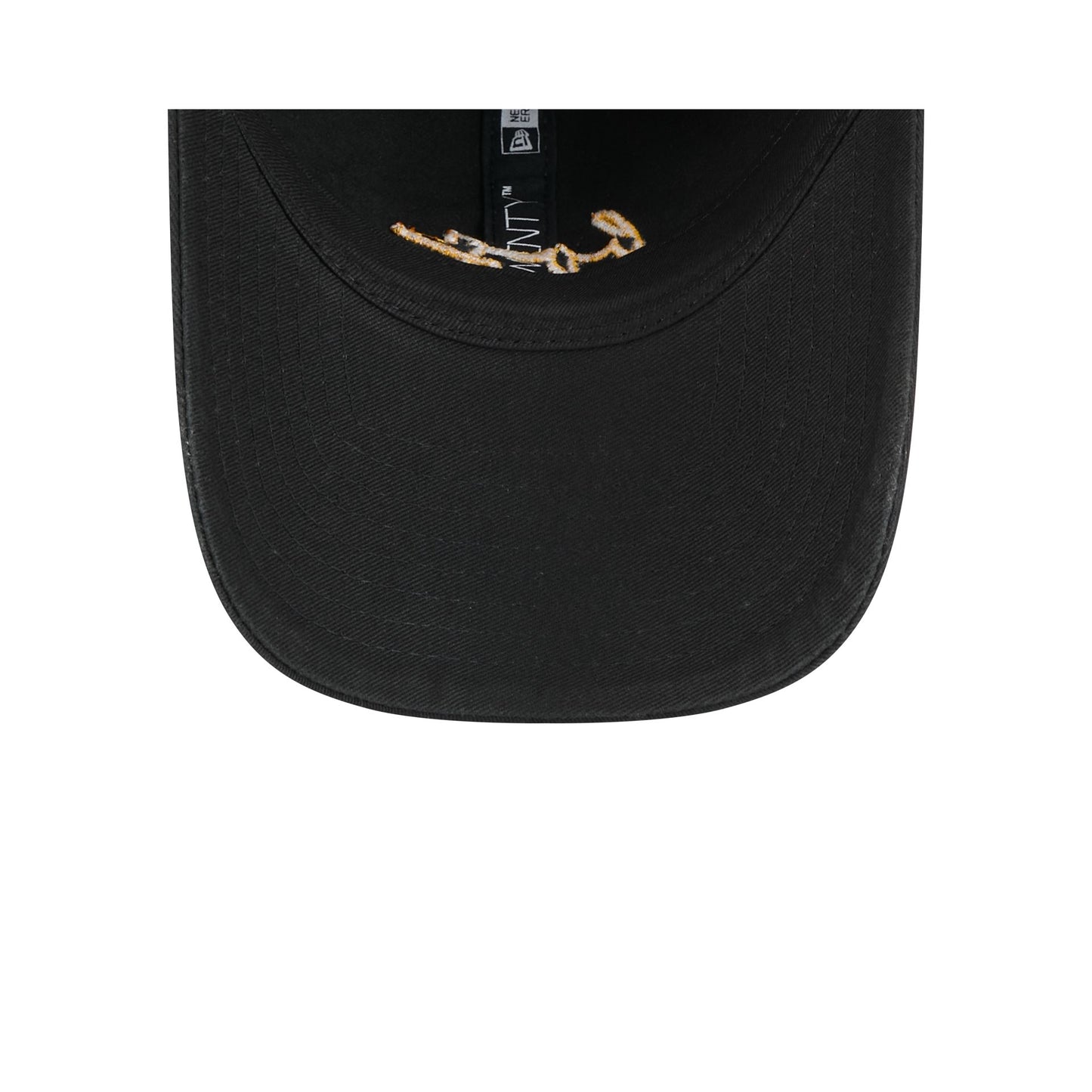 The Boston Bruins Women's Script 9TWENTY Adjustable Cap features an embroidered Bruins script at the front panels with a team tag on an adjustable D-Ring closure at the rear.