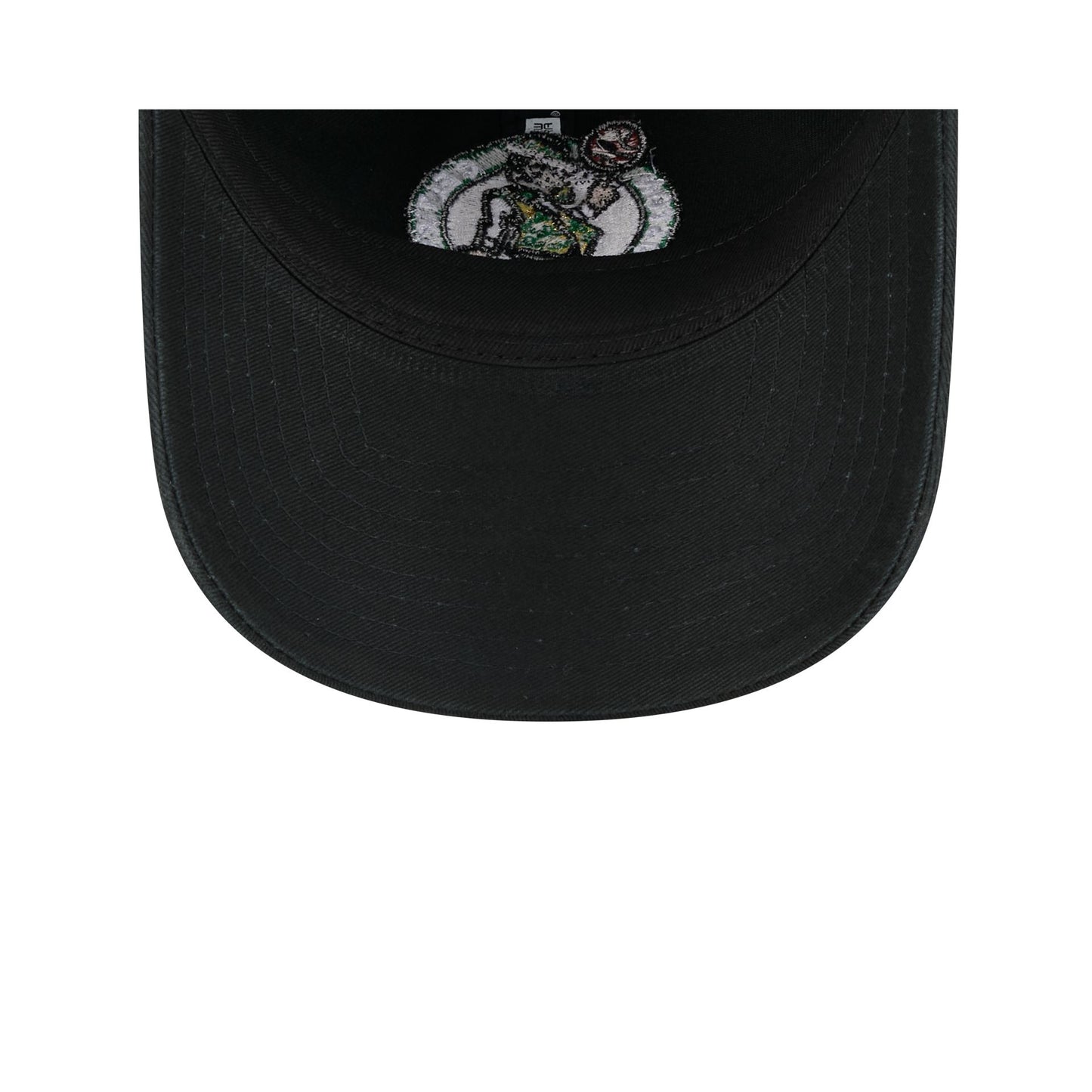 The Boston Celtics Black 9TWENTY Adjustable Cap features an embroidered Celtics logo at the front panels with a matching woven team logo tag at the adjustable D-Ring closure at the rear.