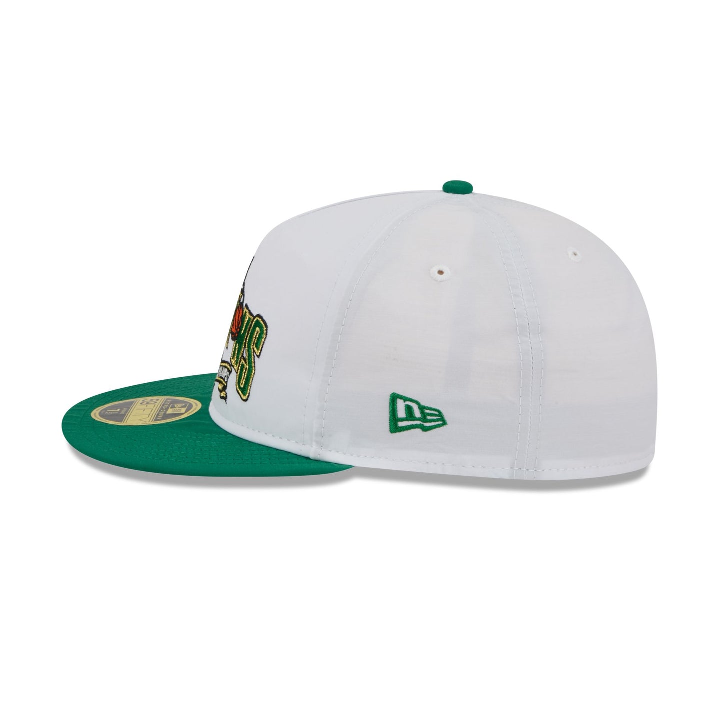 The Boston Celtics Champions White Retro Crown 59FIFTY Fitted Cap features an embroidered Celtics Champions graphic at the front panels with the NBA Logoman at the rear and a gray undervisor.