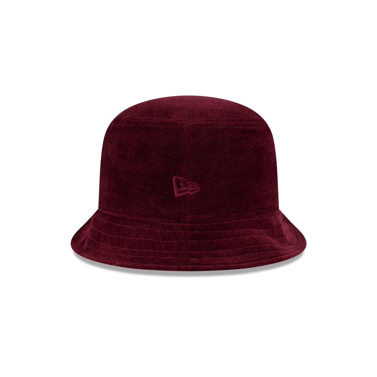 The Boston Celtics Fall Velvet Bucket Hat features a woven Celtics tag at the front with a red velvet fabrication throughout.