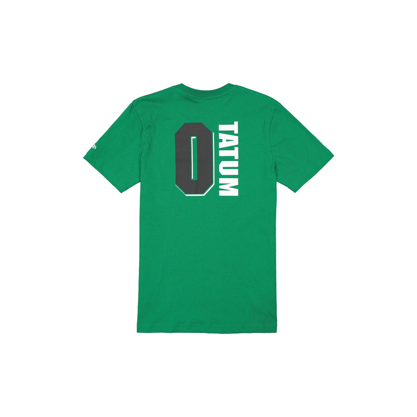The Boston Celtics Name & Number Jayson Tatum T-Shirt features a screen-printed Celtics graphic at the front with the player's name and number at the rear.