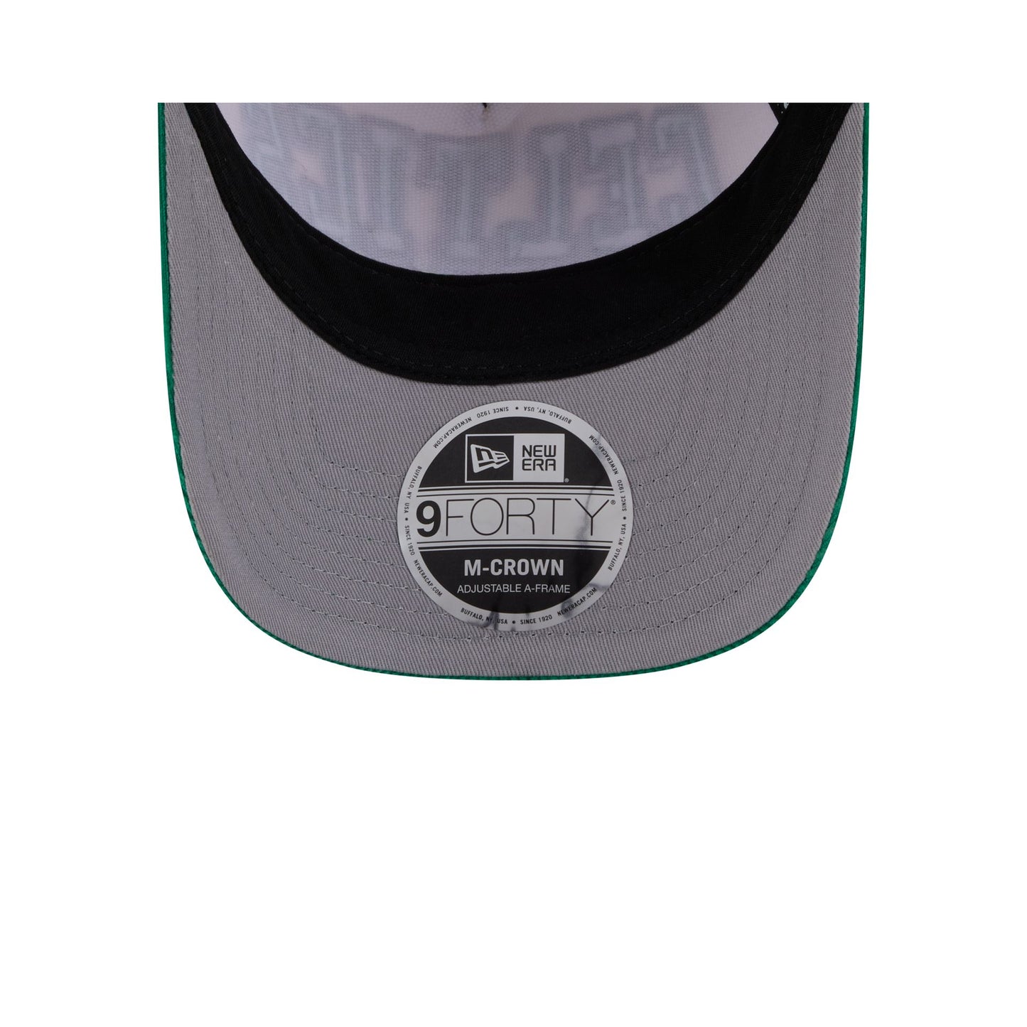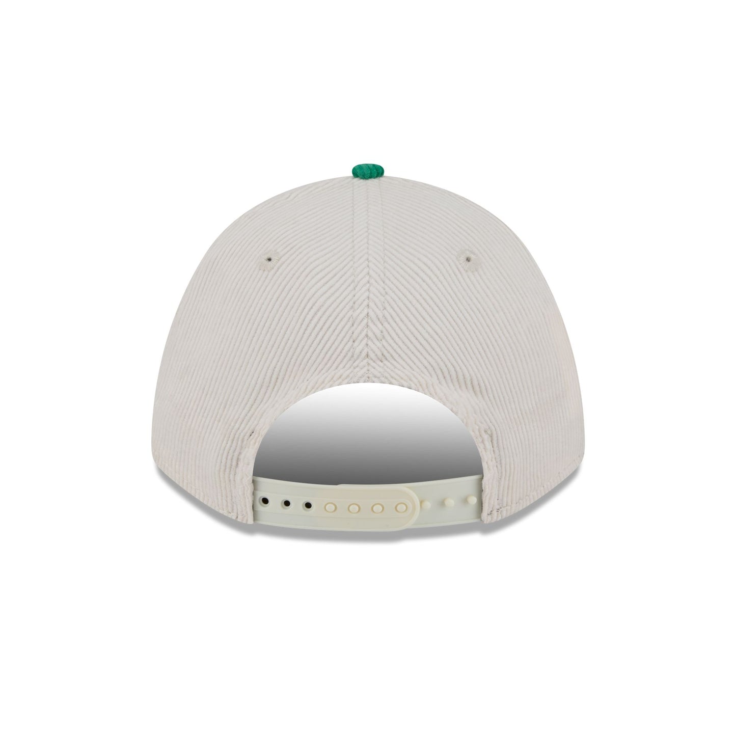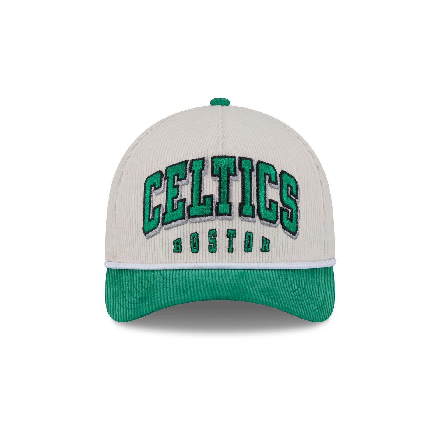 The Boston Celtics Stacked Corduroy 9FORTY M-Crown A-Frame Snapback features an embroidered Celtics stacked wordmark at the front panels with a logo at the right-wear side. Additional details include a corduroy fabrication throughout, a snapback closure at the rear, and a gray undervisor.