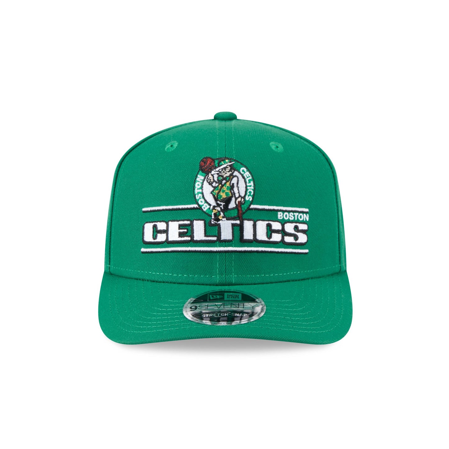 The Boston Celtics Stated 9SEVENTY Stretch-Snap features an embroidered Celtics graphic a the front panels with an adjustable stretch-snap closure at the rear and a gray undervisor.