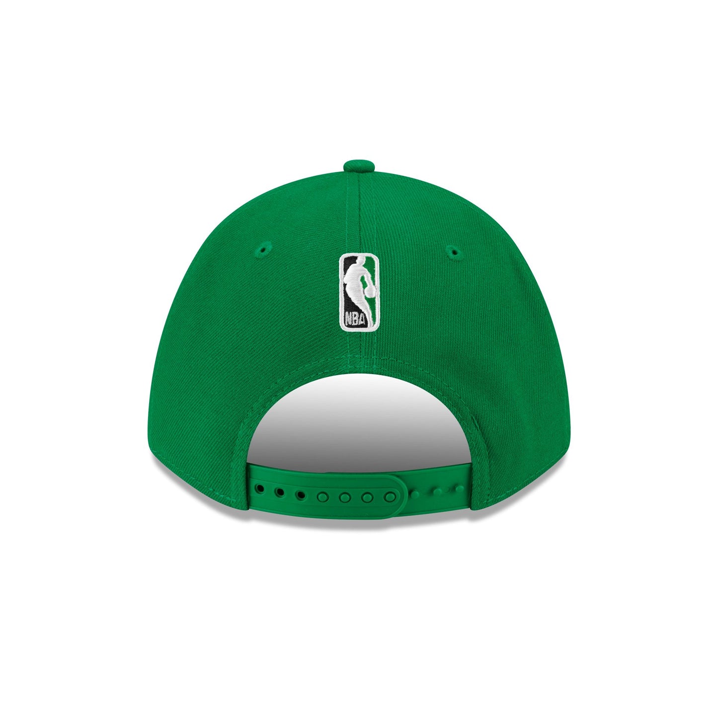 The Boston Celtics Team 9FORTY M-Crown Snapback features an embroidered Celtics logo at the front panels with the NBA Logoman above an adjustable snapback closure at the rear and a gray undervisor.