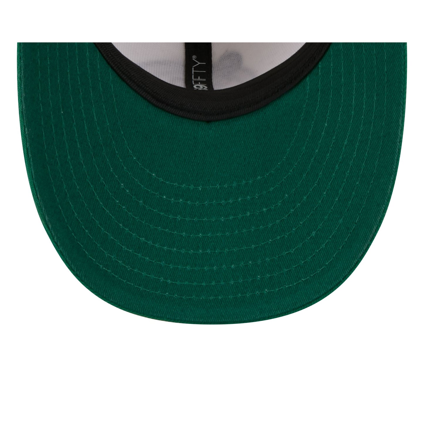 The Boston Celtics Tonal Florals White Pre-Curved 59FIFTY Fitted Cap features an embroidered Celtics logo at the front panels with a team color visor and a green undervisor. Additional details include chainstitched embroidered flowers with handstitched beading at the left-wear side and a matching NBA Logoman at the rear.