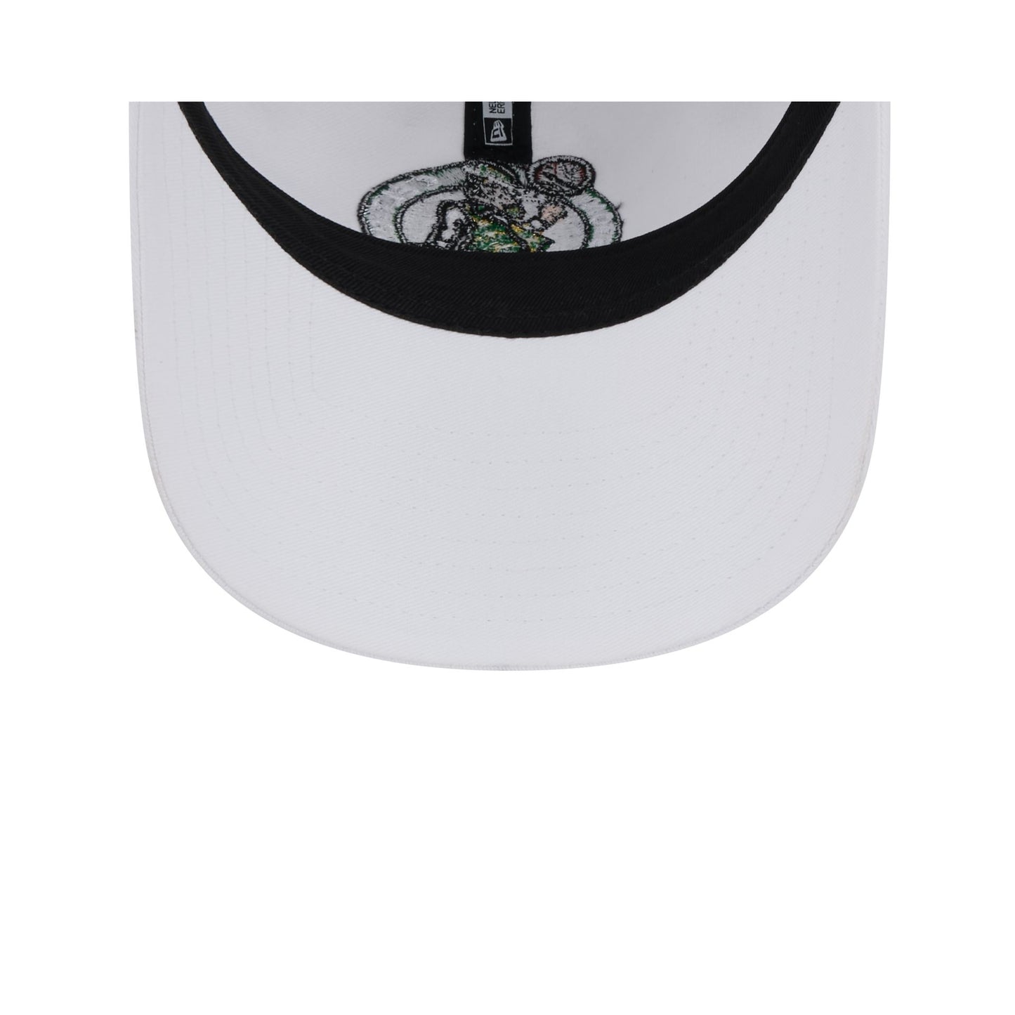 The Boston Celtics White 9TWENTY Adjustable Cap features an embroidered Celtics logo at the front panels with a matching woven team logo tag at the adjustable D-Ring closure at the rear.