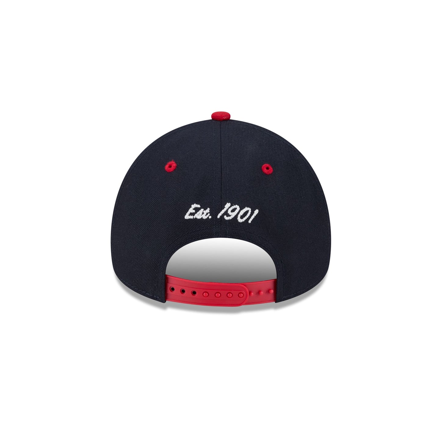 The Boston Red Sox Arched 9FORTY A-Frame Snapback features an embroidered Red Sox arched logo graphic at the front panels with a team graphic at the right-wear side. Additional details include the establishment date above an adjustable snapback closure at the rear and a gray undervisor.