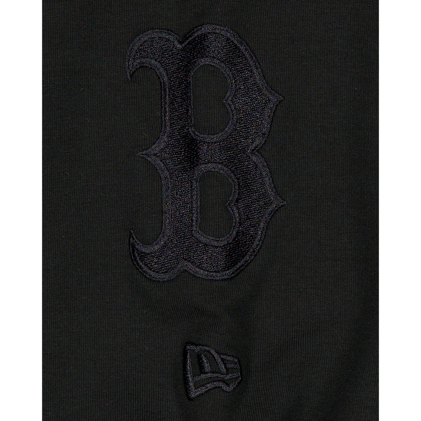 The Boston Red Sox Black on Black Logo Select Hoodie features a satin applique with a tonal stitch Red Sox wordmark at the chest and an embroidered team logo at the left-wear sleeve.