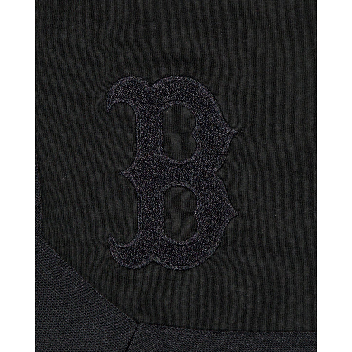 The Boston Red Sox Black on Black Logo Select Shorts features an embroidered Red Sox logo at the right-wear leg and a satin applique with a tonal stitch team wordmark at the rear left leg.