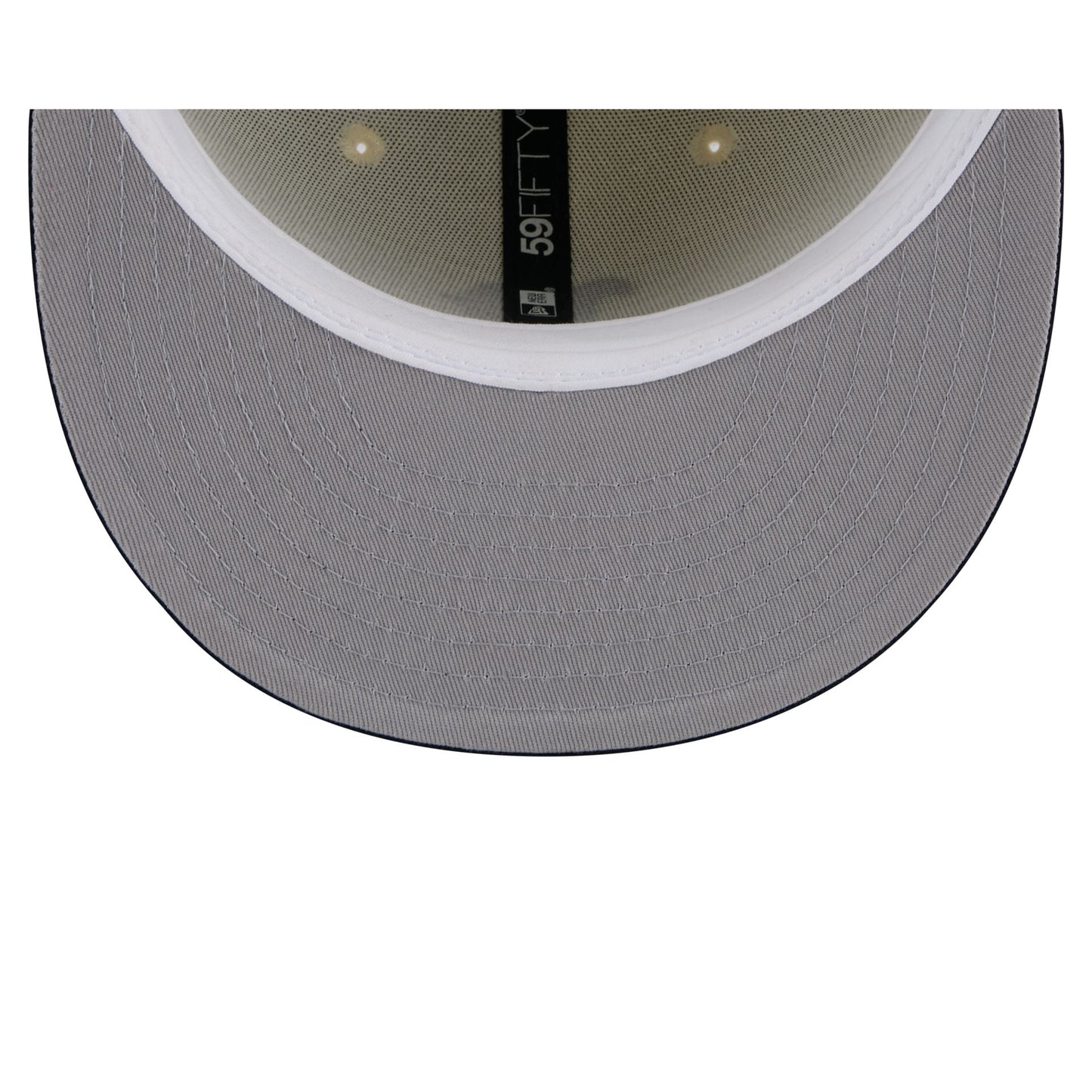 The Boston Red Sox Chrome 59FIFTY Fitted Cap features an embroidered Red Sox logo at the front panels with a matching MLB Batterman logo at the rear, a navy visor, and a gray undervisor.