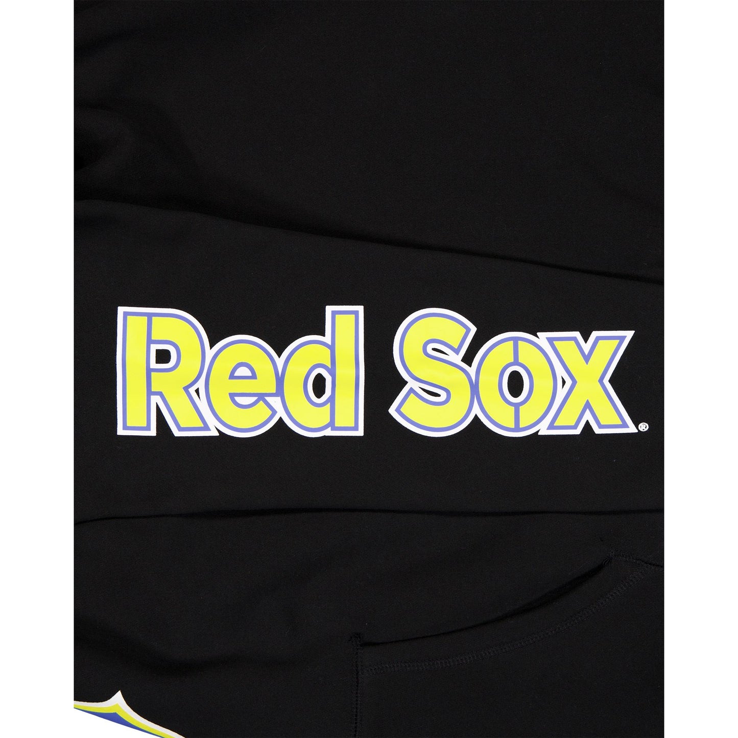 Jersey inspired, city connected. The Boston Red Sox City Connect Black Hoodie features a screen-printed Red Sox logo at the front with a team wordmark at the left-wear sleeve.