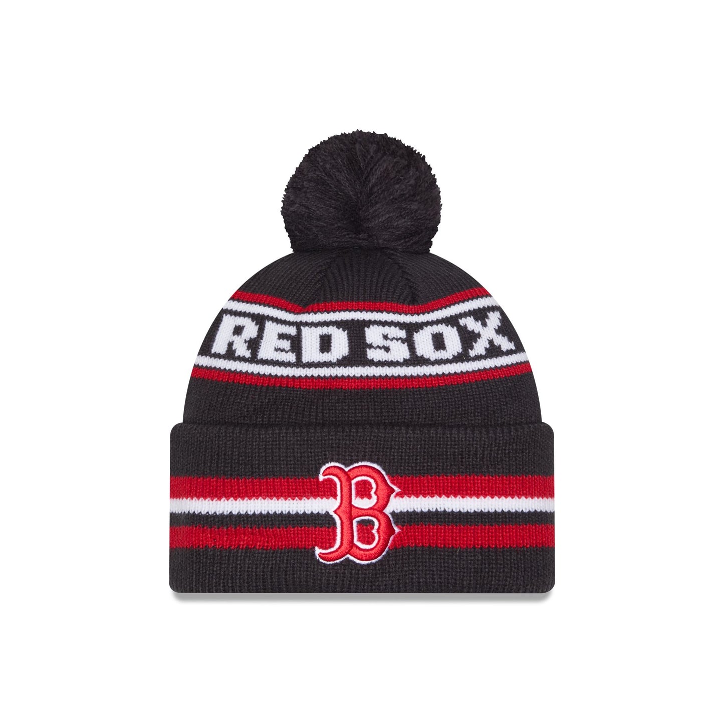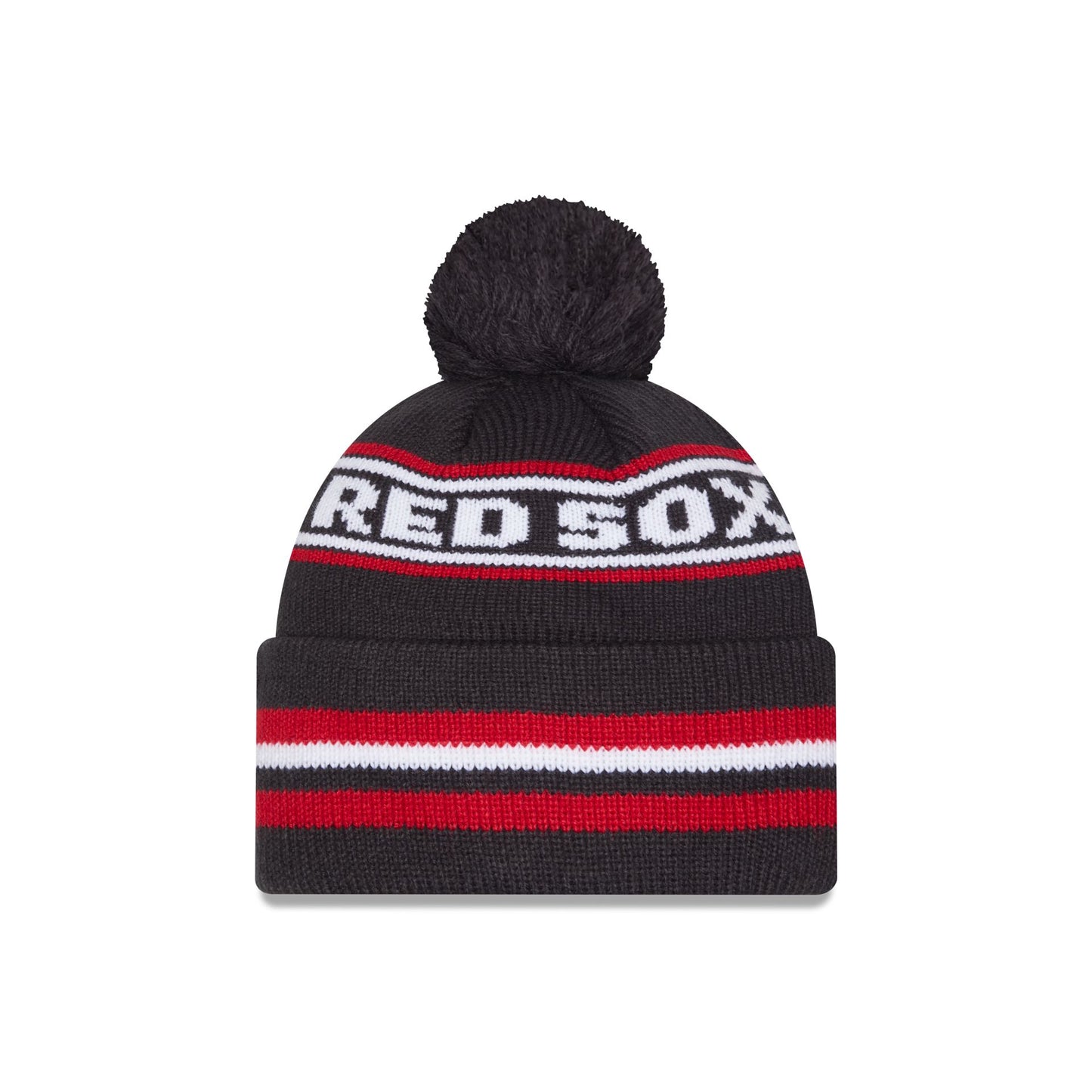 The Boston Red Sox Classic Pom Knit Hat features an embroidered Red Sox logo at the front cuff with a wordmark at the crown and a one-time removable pom.