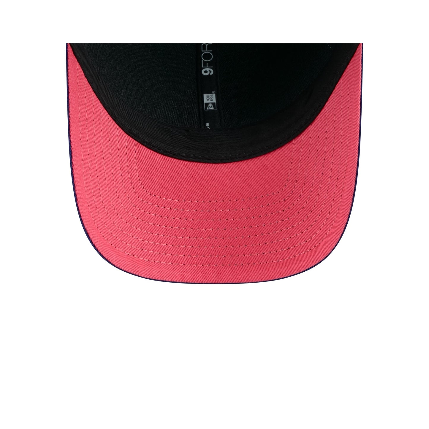 The Boston Red Sox Clear Mint 9FORTY M-Crown Adjustable Cap features an embroidered Red Sox logo at the front panels with a snapback closure at the rear. Additional details include a Fenway Park 100 Years patch at the right-wear with a blue ink visor and a beetroot undervisor.