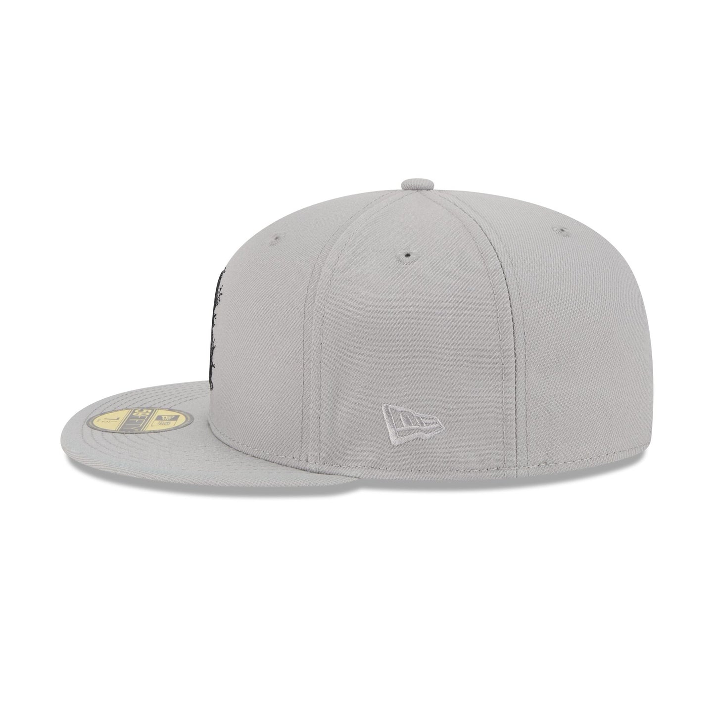 The Boston Red Sox Cracked Cement 59FIFTY Fitted Cap features an embroidered crackle effect Red Sox logo at the front panel with a matching MLB Batterman logo at the rear, a monochromatic team logo at the right-wear side, and a green undervisor.