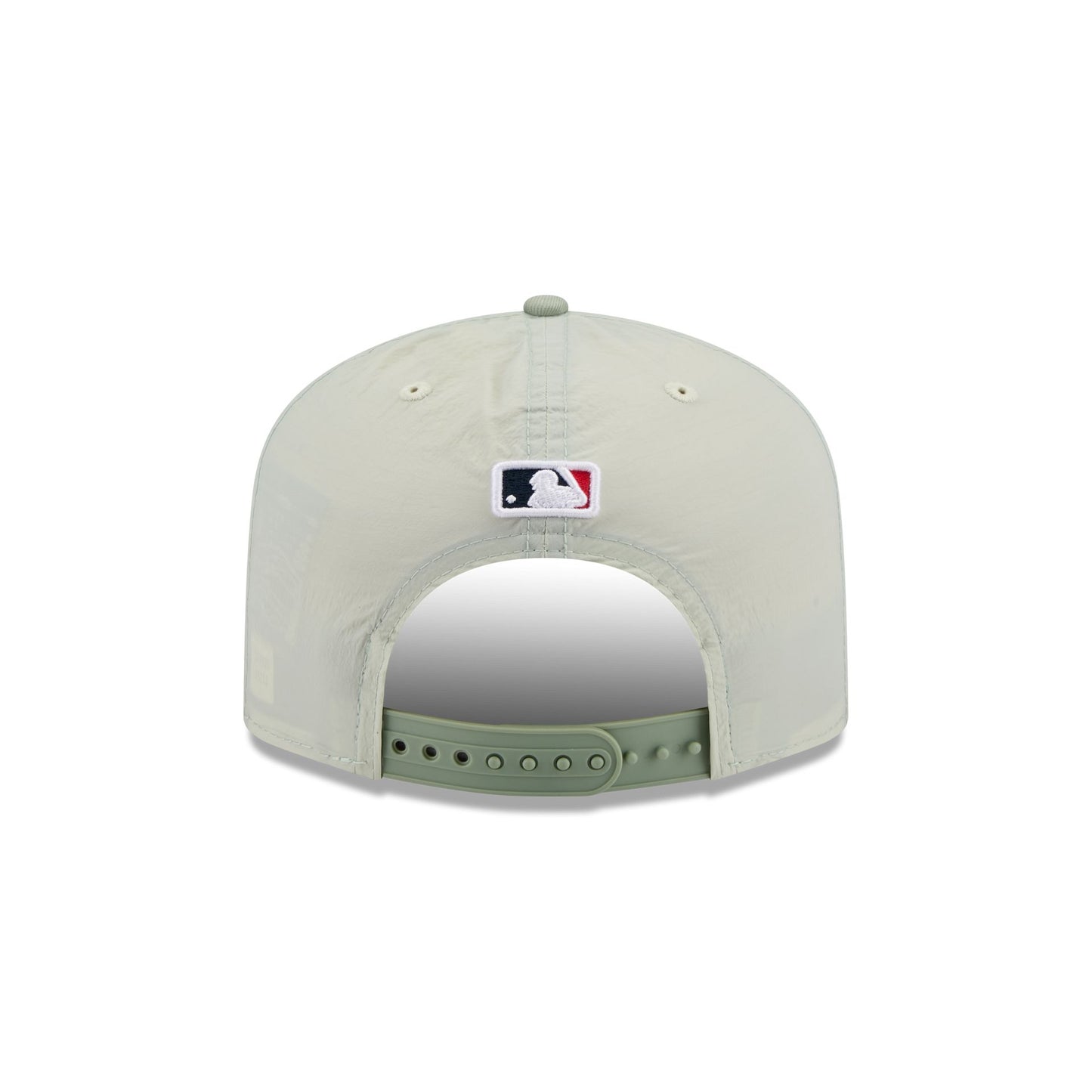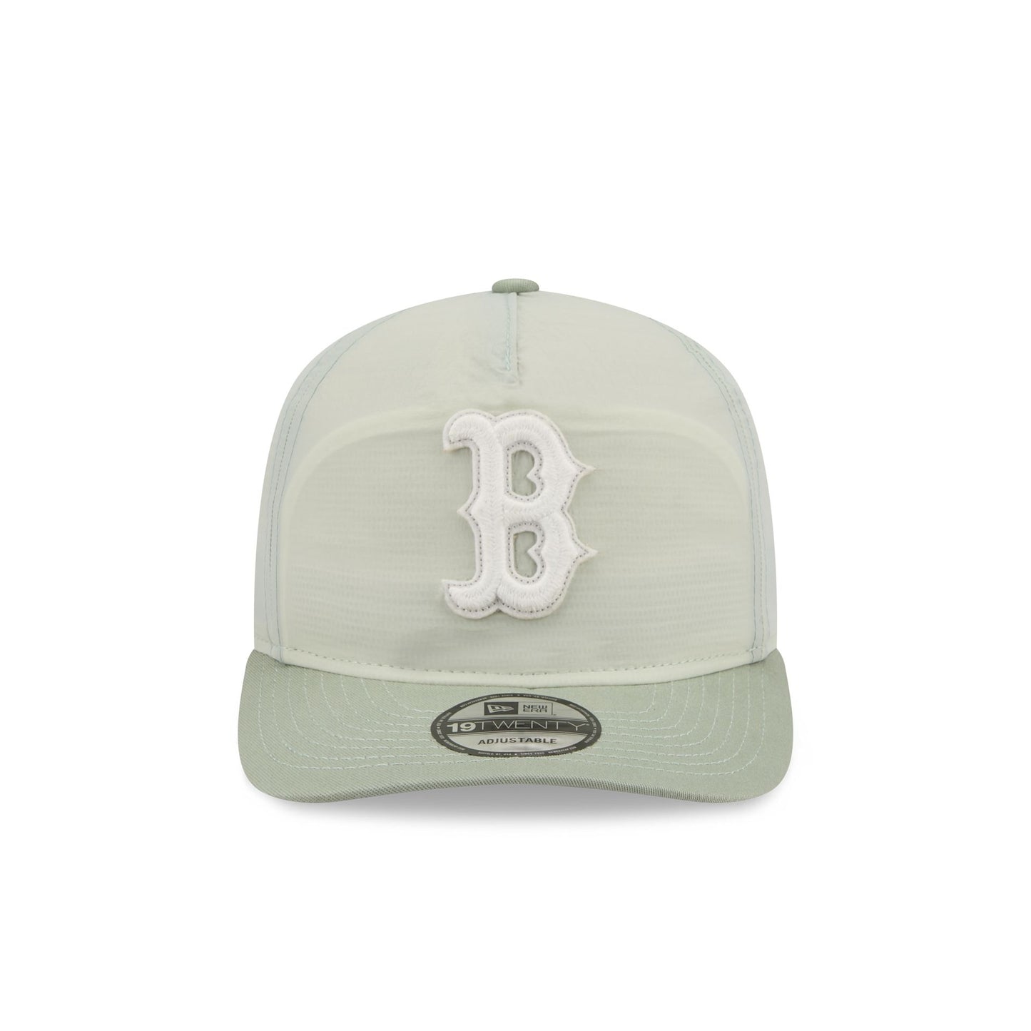The Boston Red Sox Crinkle 19TWENTY Adjustable Cap features an embroidered Red Sox logo at the front panels with a nylon fabrication throughout. Additional details include the MLB Batterman logo above an adjustable snapback closure at the rear and a green undervisor.