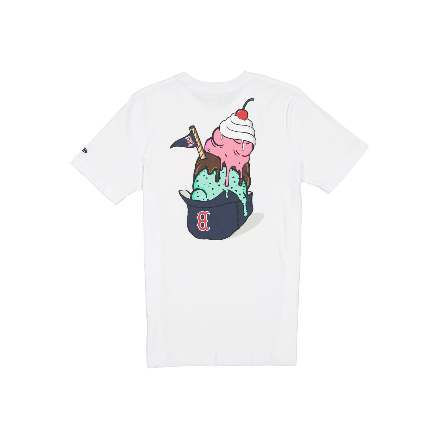 The Boston Red Sox Game Day Ice Cream T-Shirt features a screen-printed Red Sox logo at the left chest with an ice cream graphic at the rear.