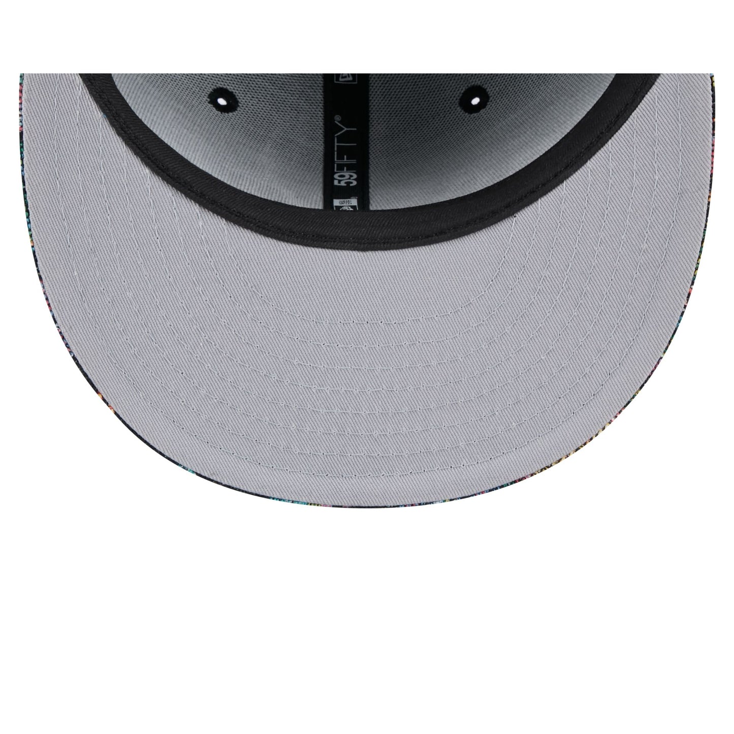 The Boston Red Sox Jacquard Pattern 59FIFTY Fitted Cap features an embroidered Red Sox wordmark at the front panels with a matching MLB Batterman logo at the rear. Additional details include a floral jacquard pattern throughout and a gray undervisor.