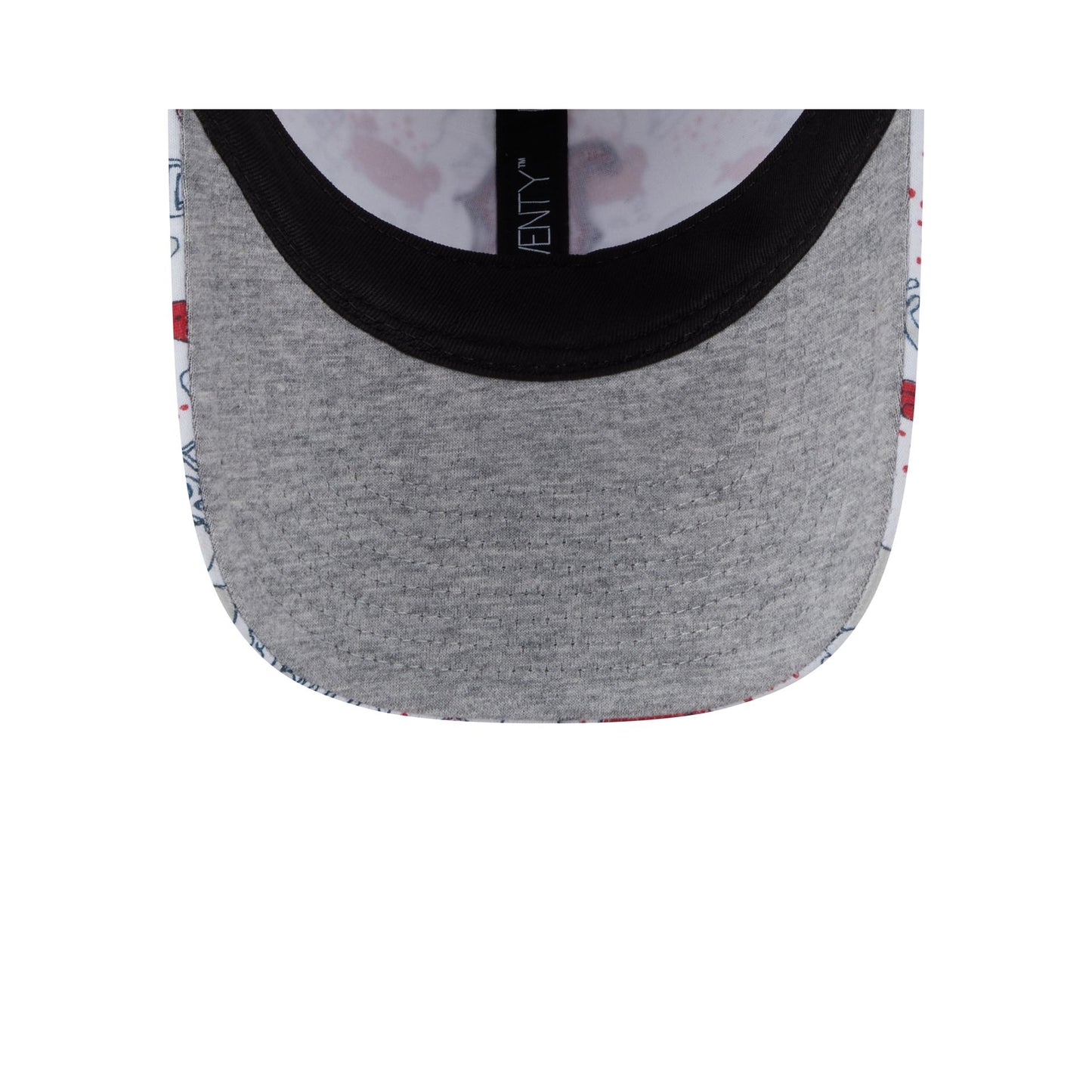 The Boston Red Sox Kids Ocean 9TWENTY Adjustable Cap features an embroidered Red Sox logo at the front panels with a nautical design throughout the cap. Additional details include a stretch strap closure at the rear and a gray undervisor.