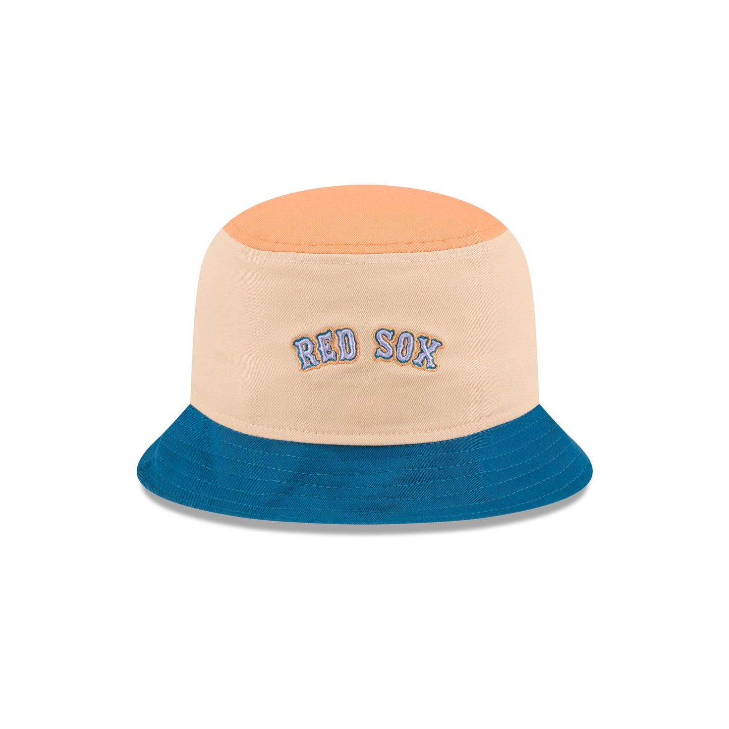The Boston Red Sox Mango Mocha Bucket Hat features an embroidered Red Sox logo at the front panels with a wordmark at the rear.