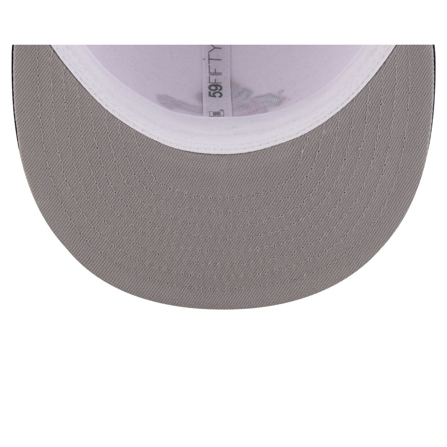 The Boston Red Sox Mascot White 59FIFTY Fitted Cap features an embroidered Red Sox mascot at the front panels with a matching MLB Batterman logo at the rear. Additional details include a 90th Anniversary patch at the right-wear side and a gray undervisor,