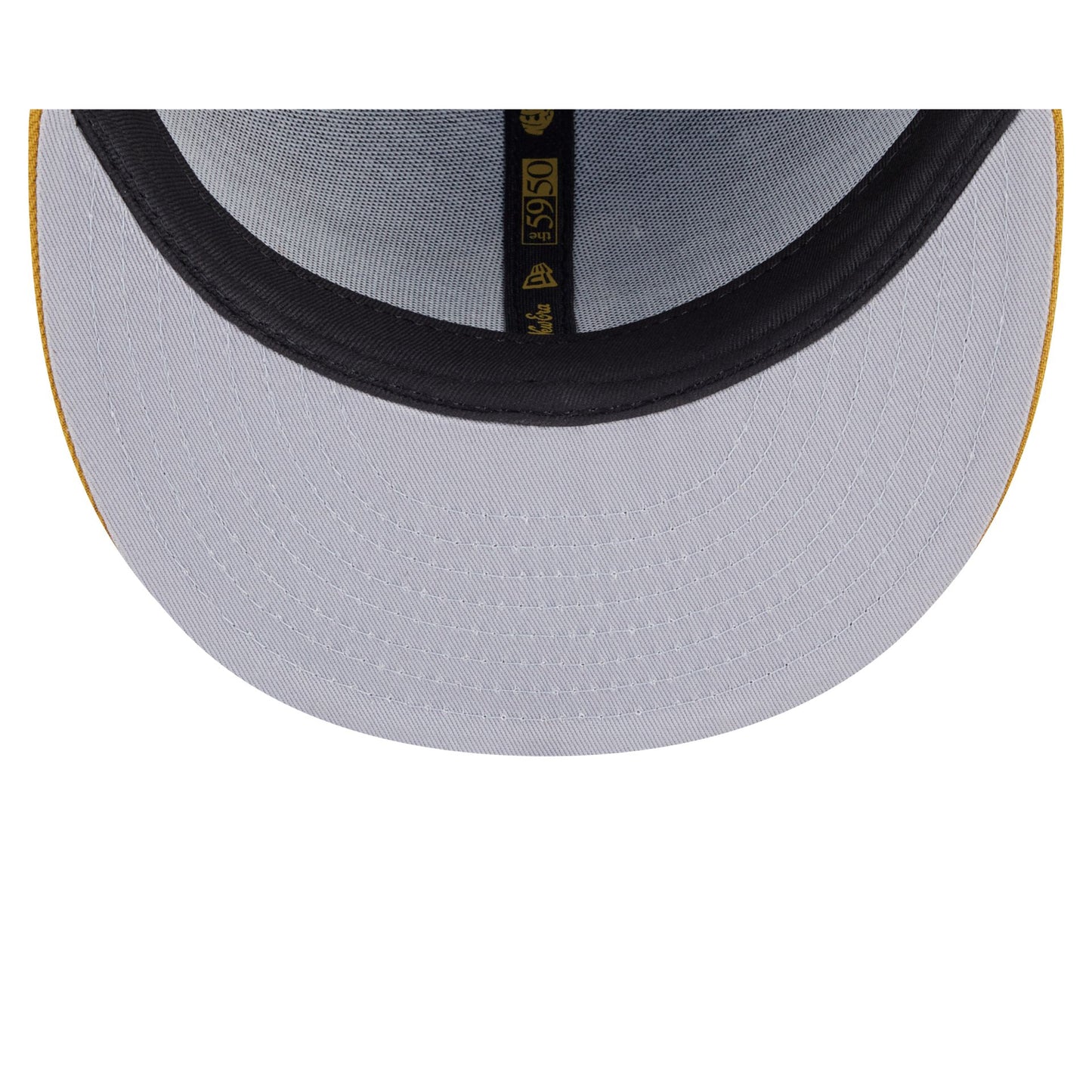 The Boston Red Sox Metallic Gold Logo 59FIFTY Fitted Cap features an embroidered gold Red Sox logo at the front panels with a matching MLB Batterman logo at the rear. Additional details include a gold visor and a gray undervisor.