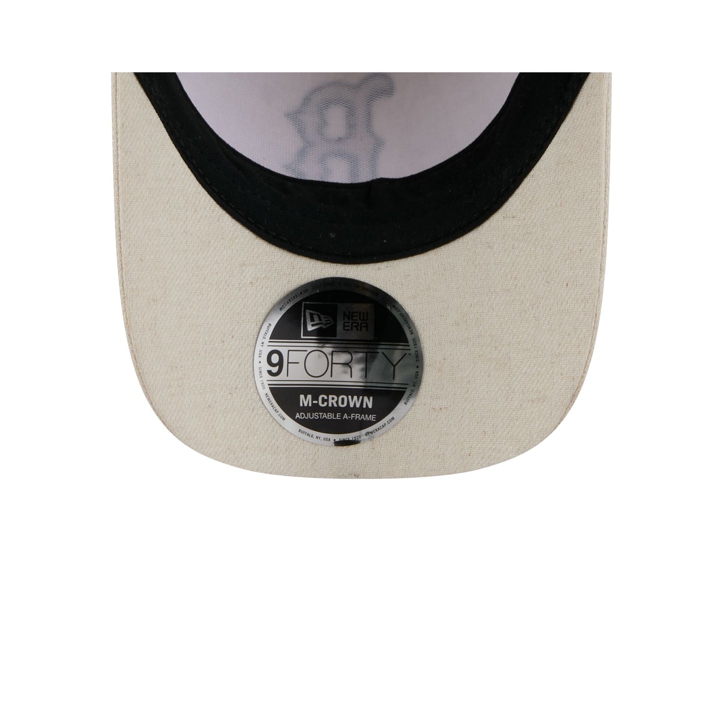 The Boston Red Sox Neutral Hemp 9FORTY M-Crown A-Frame Adjustable Cap features an embroidered Red Sox logo at the front panels with stripes at the visor and an adjustable hook and loop strap at the rear.