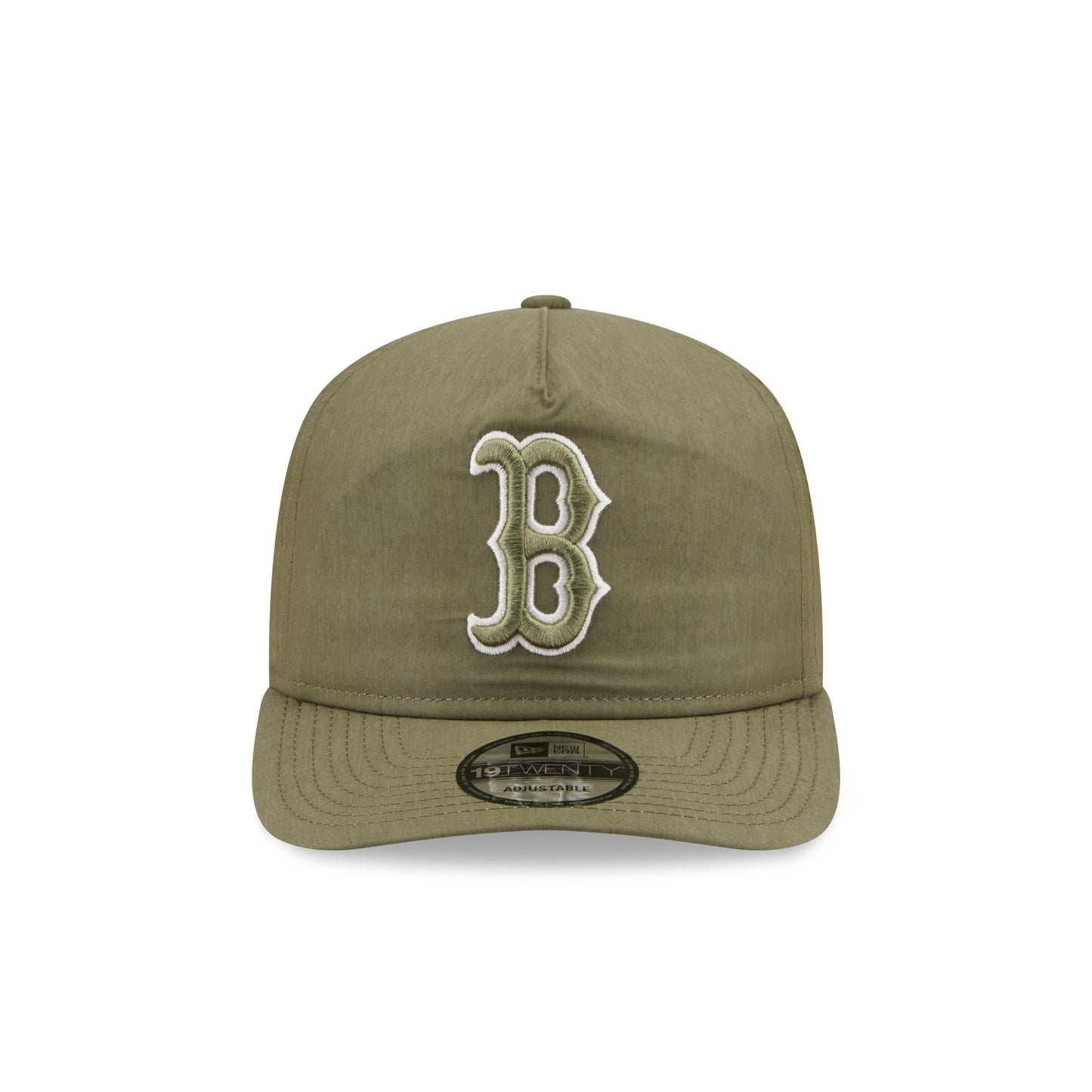 The Boston Red Sox Olive Green Nylon 19TWENTY Adjustable Cap features an embroidered Red Sox white logo at the front panels with an adjustable snapback closure at the rear and a gray undervisor.