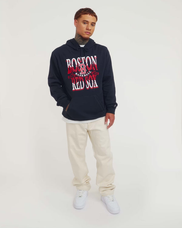The Boston Red Sox Sport Classics Navy Hoodie features a screen-printed Red Sox graphic at the front.