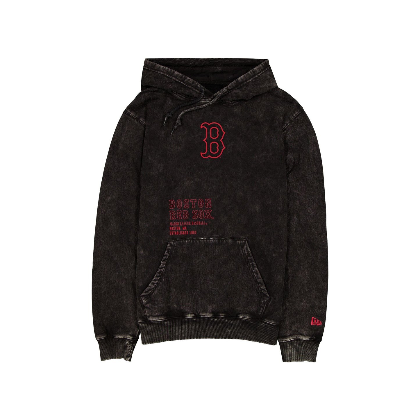 The Boston Red Sox Sport Night Black Hoodie features a screen-printed Red Sox graphic at the front with kangaroo pockets and adjustable drawstrings at the hood.