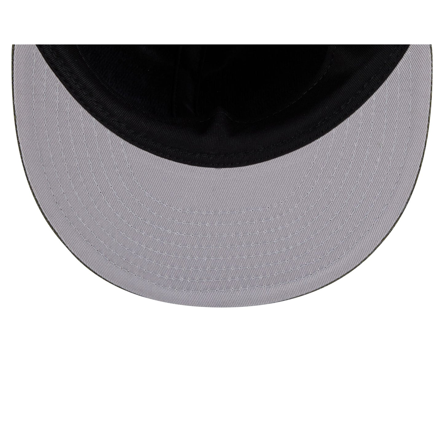 The Boston Red Sox Three Looms Cotton Twill Camo Retro Crown Dog Ear 59FIFTY Fitted features an embroidered Red Sox logo at the front panels with a matching MLB Batterman logo at the rear. Additional details include fleece camo lined ear covers with a snap button closure and a gray undervisor.