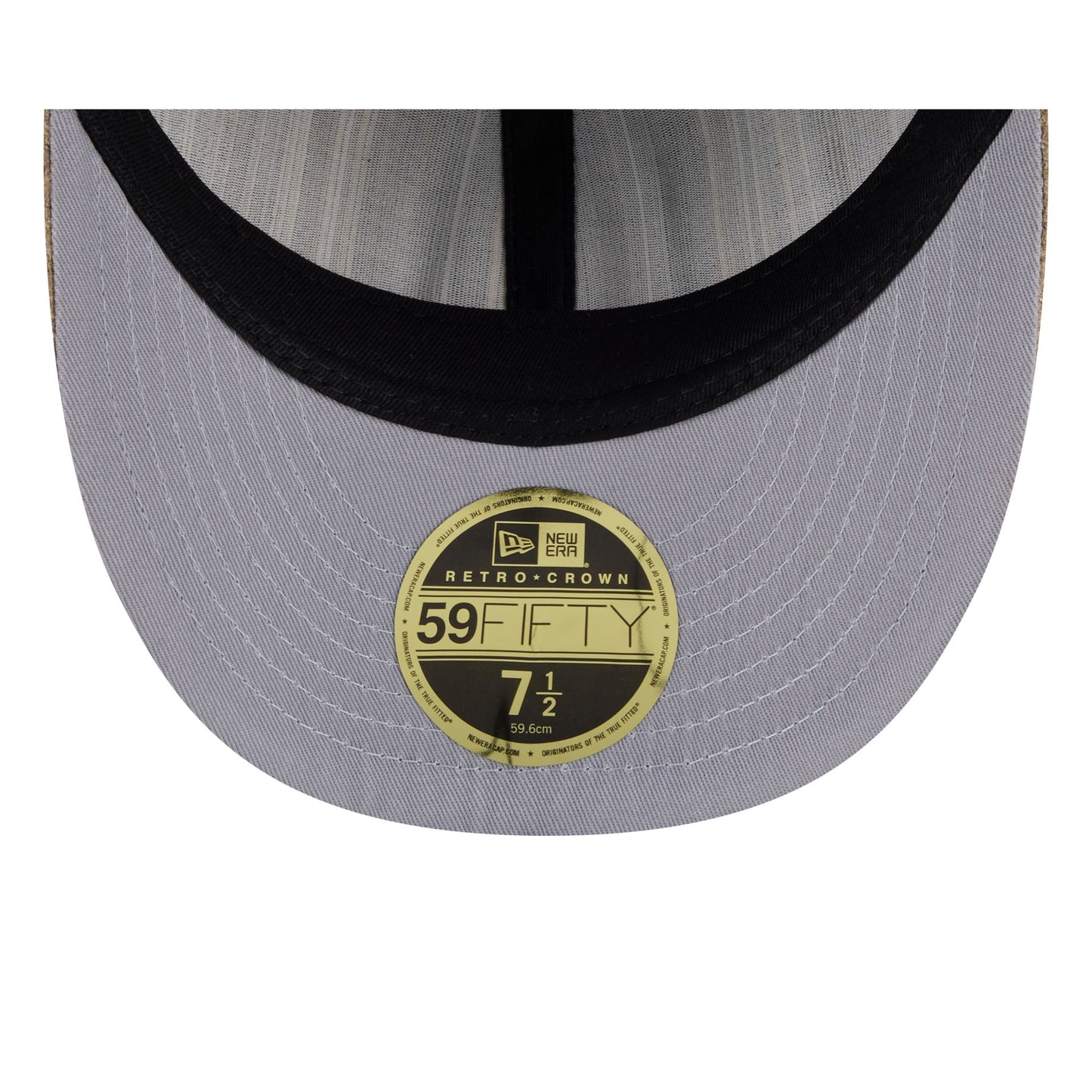The Boston Red Sox Three Looms Vintage Tweed Retro Crown Pre-Curved 59FIFTY Fitted features an embroidered Red Sox logo at the front panels with a matching MLB Batterman logo at the rear, a pre-curved tan visor, and a gray undervisor.