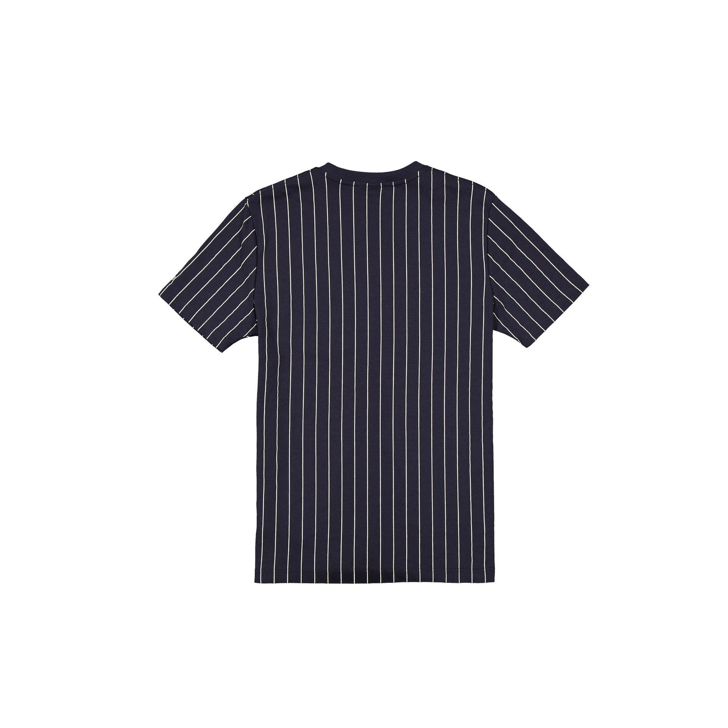The Boston Red Sox Throwback Pinstripe Wordmark T-Shirt features a twill applique Red Sox wordmark and logo at the front with a New Era jock tag at the left hip.