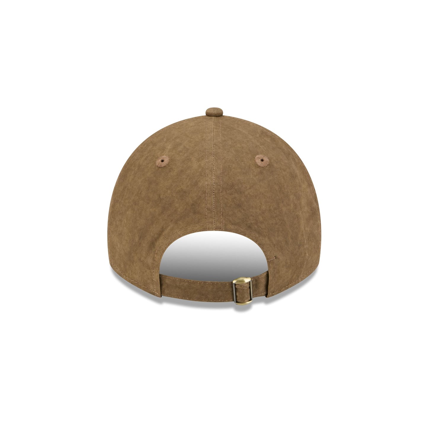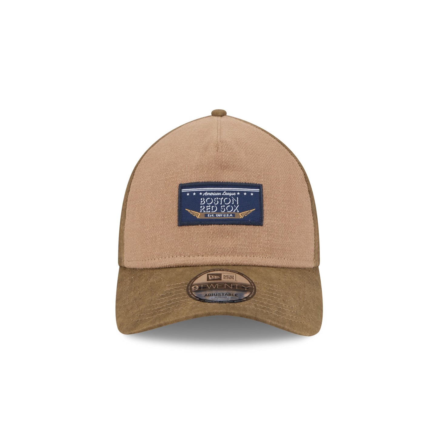 The Boston Red Sox Utility Linen 9TWENTY A-Frame Adjustable Cap features a woven Red Sox tag at the front panels against a linen fabrication with a team logo at the right-wear side. Additional details include the state or city flag sublimation at the interior of the cap and an adjustable D-Ring closure at the rear.