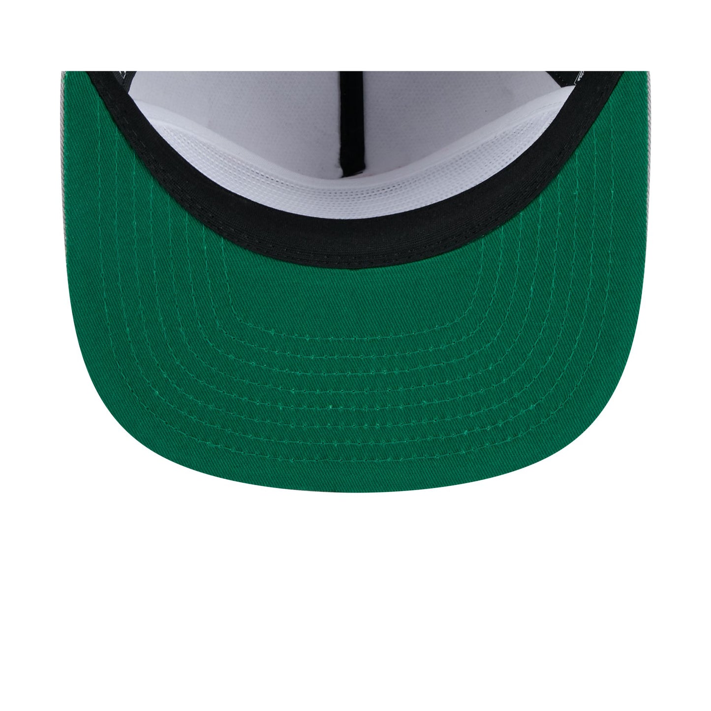 The Boston Red Sox Vintage Gray Golfer features an embroidered "PROPERTY OF" Red Sox wordmark at the front panels with a team logo at the right-wear side and a rope at the visor. Additional details include a snapback closure at the rear and a green undervisor.