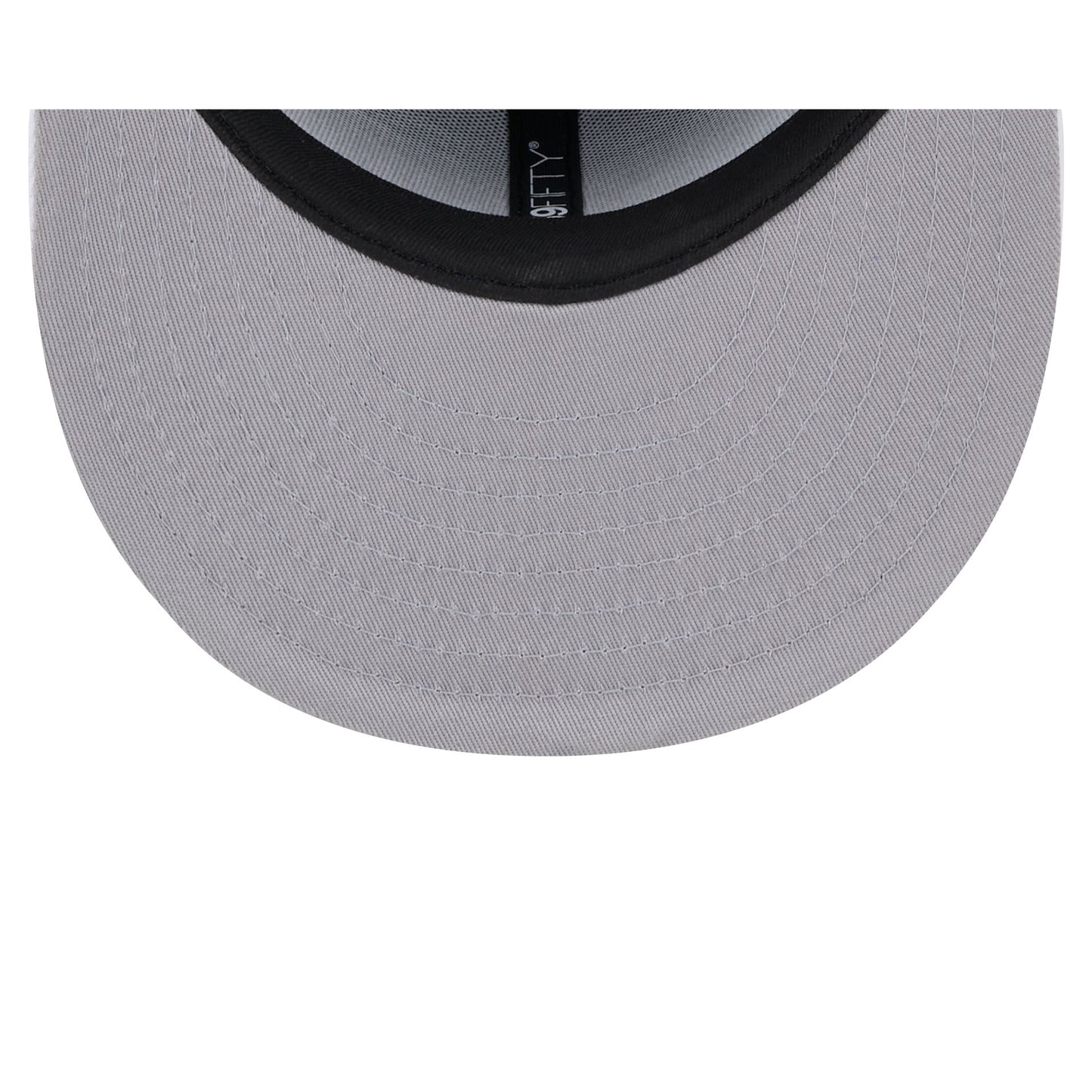 The Boston Red Sox Wave Fill 59FIFTY Fitted Cap features an embroidered wave fill Red Sox wordmark at the front panels with a matching MLB Batterman logo at the rear. Additional details include a jacquard crown, a white visor, and a gray undervisor.