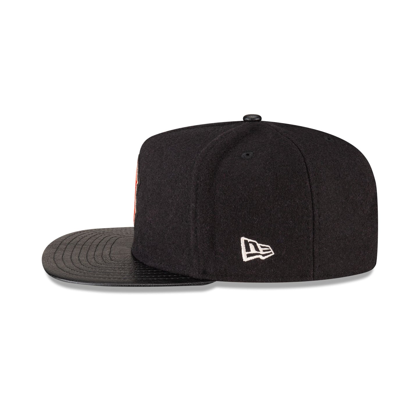 The Boston Red Sox Wool Letterman 9FIFTY A-Frame Snapback features an embroidered loop Red Sox logo at the front panels with a team script and establishment date at the right-wear side. Additional details include a wool fabrication throughout, a snapback closure at the rear, and a gray undervisor.