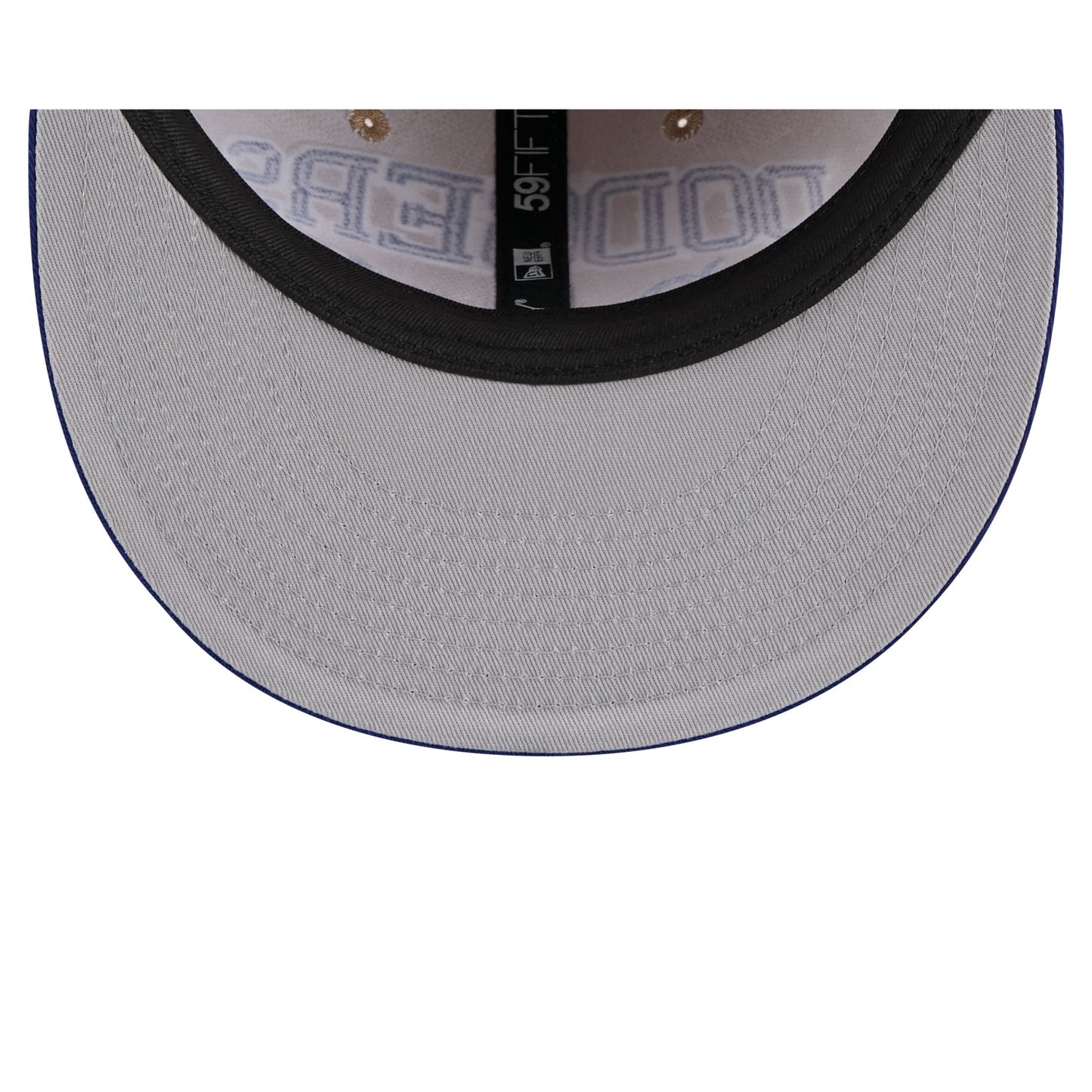 The Brooklyn Dodgers Camel Retro Crown 59FIFTY Fitted Cap features an embroidered Dodgers Cooperstown wordmark, logo, and league patch at the front panels. Additional details include an MLB Batterman logo at the rear and a gray undervisor.
