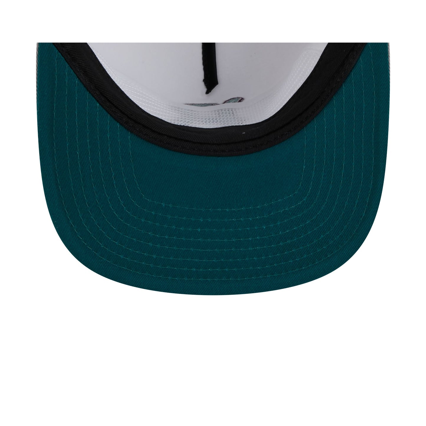The Brooklyn Dodgers Optic White Golfer features an embroidered Dodgers Cooperstown logo at the front panels with a matching team wordmark at the right-wear side. Additional details include a snapback closure at the rear and a teal undervisor.