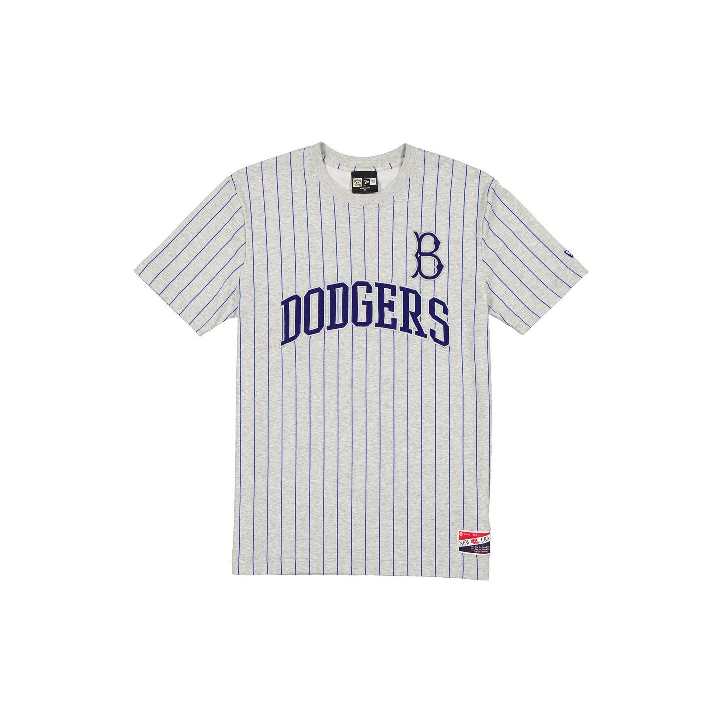 The Brooklyn Dodgers Throwback Retro Gray Pinstripe T-Shirt features an embroidered Dodgers wordmark at the front with a twill applique logo at the left chest.