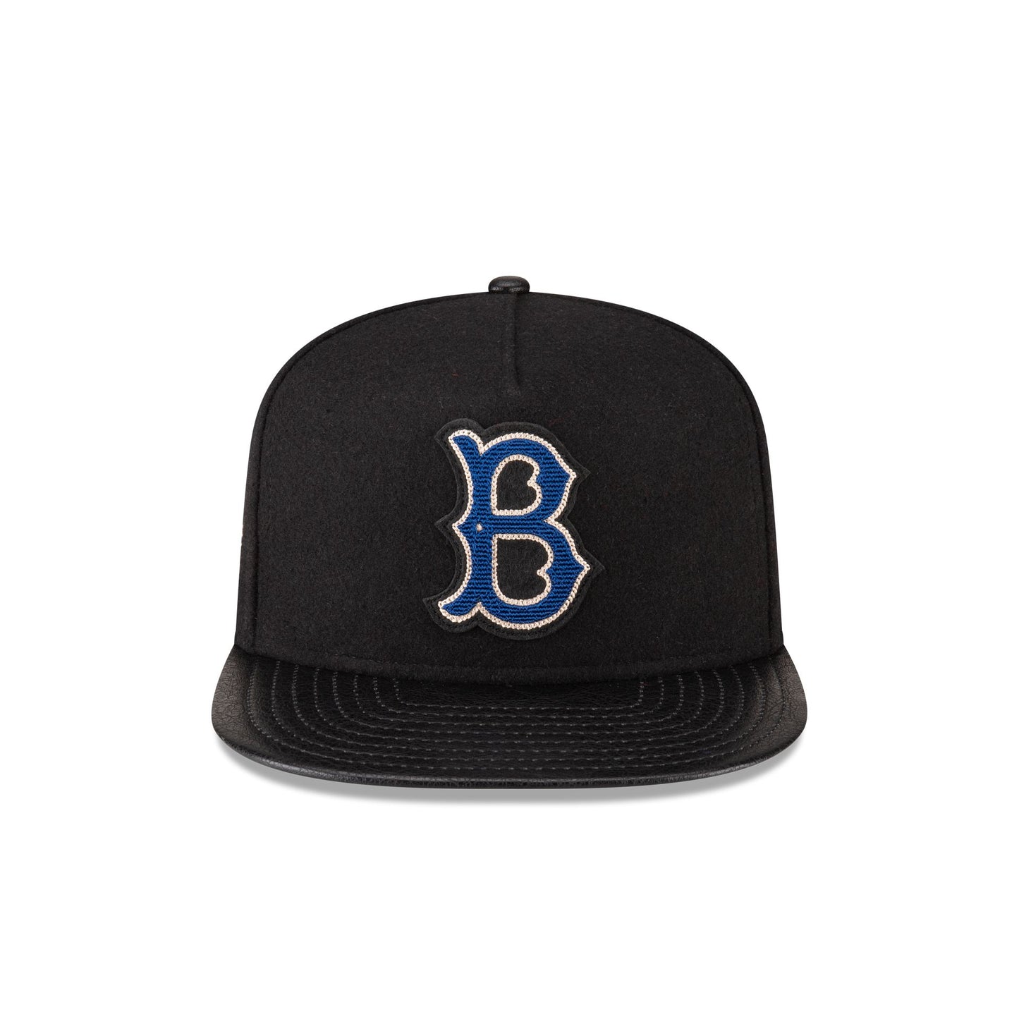 The Brooklyn Dodgers Wool Letterman 9FIFTY A-Frame Snapback features an embroidered loop Dodgers Cooperstown logo at the front panels with a team script and establishment date at the right-wear side. Additional details include a wool fabrication throughout, a snapback closure at the rear, and a gray undervisor.