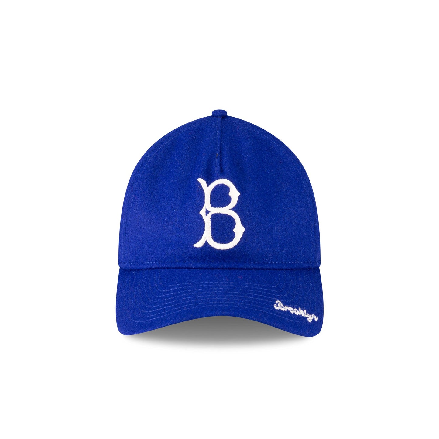 The Brooklyn Dodgers Wool Letterman 9TWENTY A-Frame Adjustable Cap features an embroidered Dodgers Cooperstown logo at the front panels against a wool fabrication throughout the cap. Additional details include an embroidered team script at the visor with a striped adjustable D-Ring closure at the rear and a green undervisor.