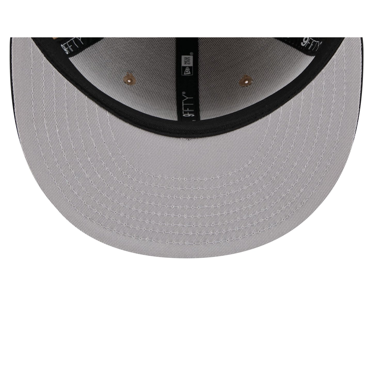 The Brooklyn Nets 2024 Draft 9FIFTY Snapback features an embroidered Nets logo and team wordmark at the front panels with the official NBA Logoman above a snapback closure at the rear and a gray undervisor.